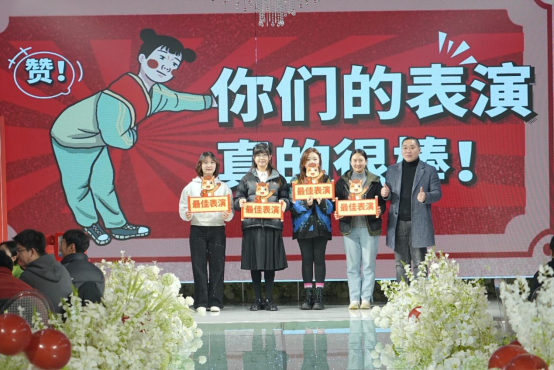 在团拜会上,教职工文艺表演与互动游戏穿插进行。各系部精心准备活力四射、年味十足的节目,充分展现了学院教职工的多才多艺与昂扬风貌。此次活动不仅为全体教职工提供了交流互动的平台,更凝聚了人心、鼓舞了士气。未来,新媒体电商学院将以更团结的姿态、更饱满的热情,稳步推进各项工作,在产教融合的道路上勇毅前行。