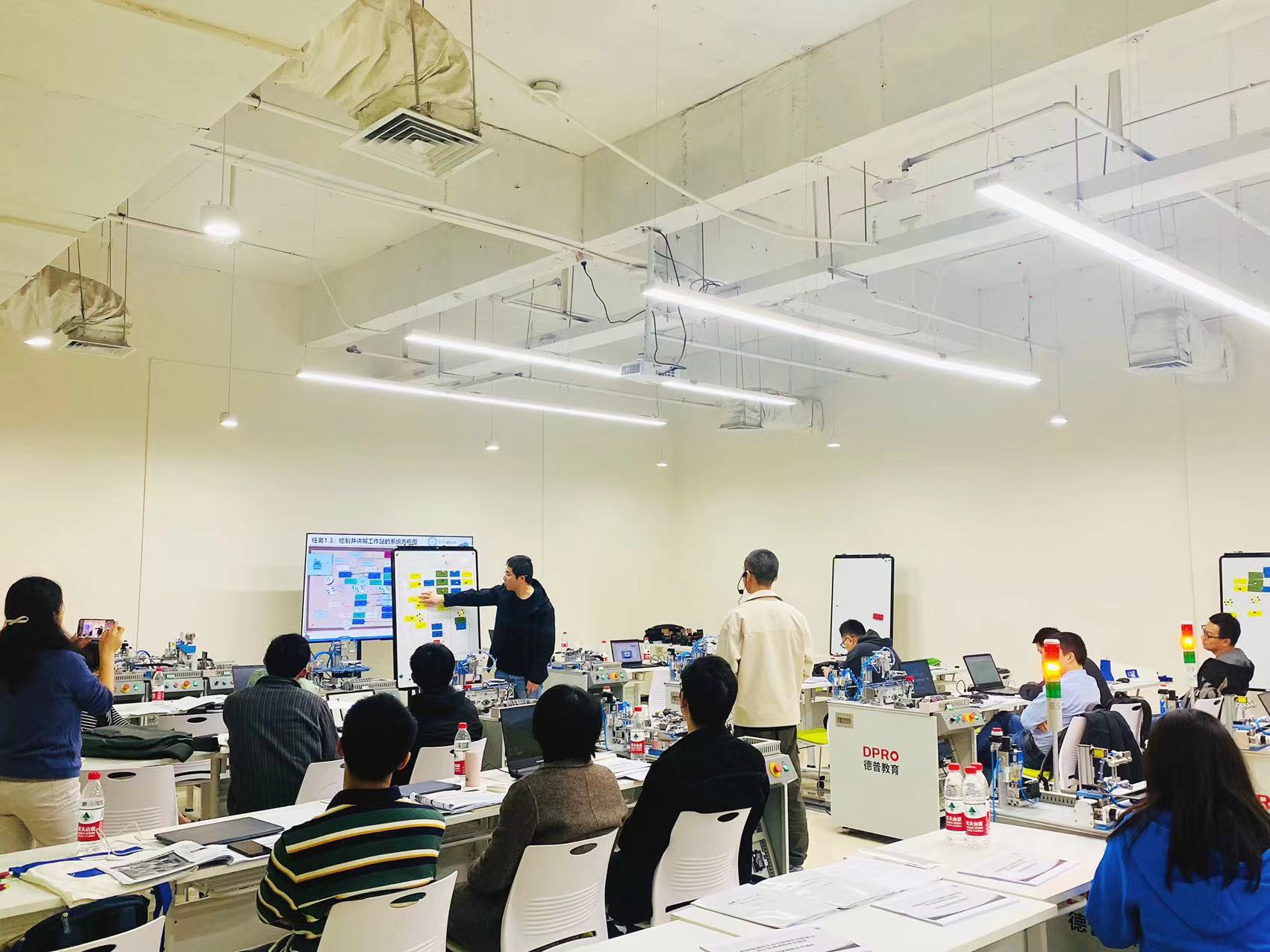活动中,北京德普罗尔科技有限公司的2名讲师讲解了智能制造核心课程建设思路,并对部分内容进行了展示。内容主要包含传统专业向智能制造和工业互联网转型的核心实践课程体系建设探讨,以及《智能产线系统开发与实施》和《智能产线工业互联网项目开发与实施》实践教学观摩体验环节。杨文科与来自重庆大学、重庆邮电大学、重庆理工大学、西南科技大学、重庆电力高等专科学校等智能制造专业的老师就专业建设、课程建设方面的内容进行了深入交流,探讨了面对制造业“智改、数转、网联”的趋势。