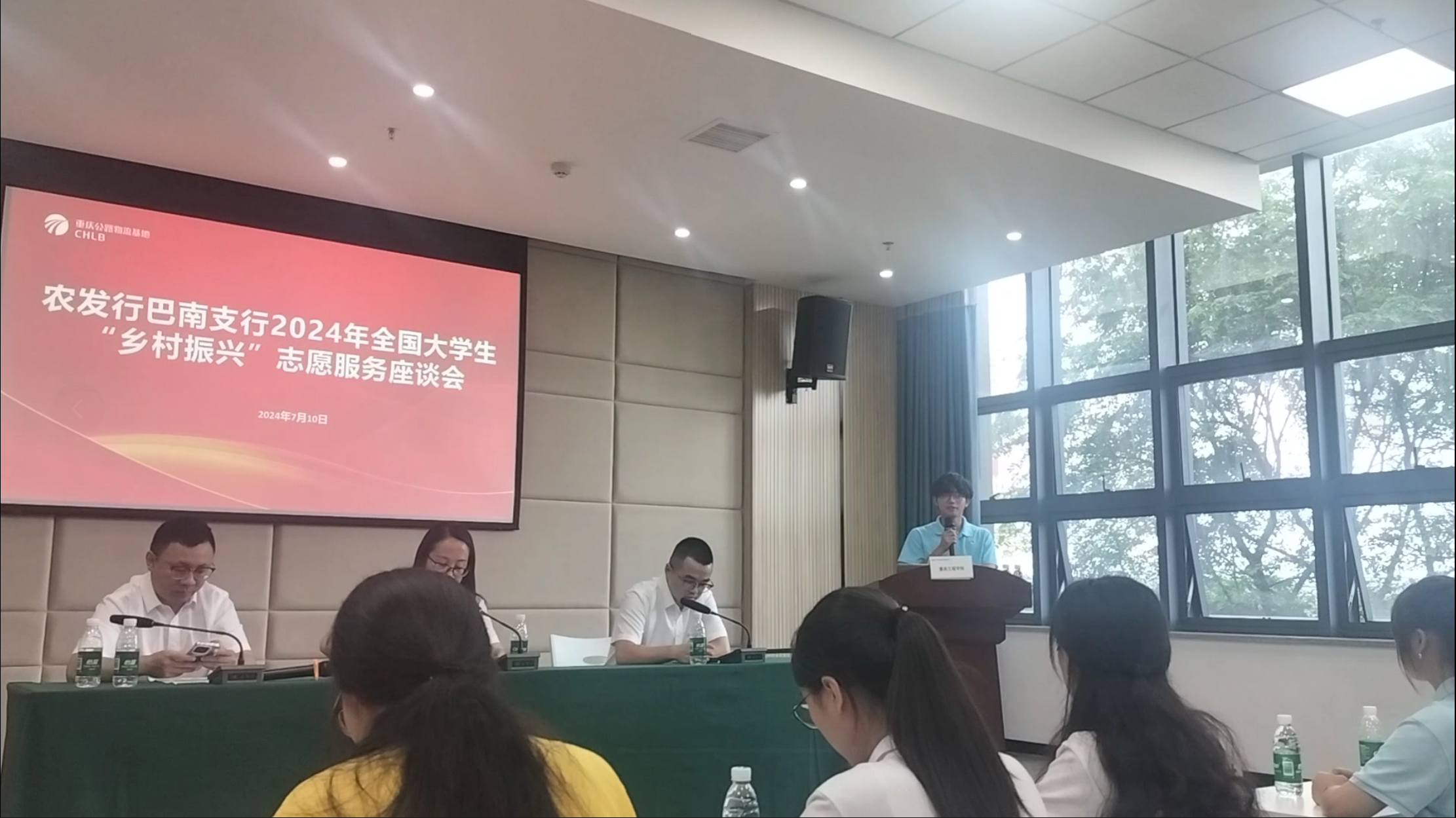 最后,在重庆新发地东盟农产品有限公司三楼会议室开展的交流研讨会上,农发行巴南支行青年员工和大学生志愿服务队共同学习习近平总书记关于“三农”工作的重要论述和实践要求。支行青年员工宣讲农发行服务乡村振兴的做法及成效,大学生志愿者交流研学心得和支农感悟。其中,智创先锋宣讲团大学生志愿者代表樊益智同学在交流中表示,在参观了基地和公司后,对农发行巴南支行在乡村振兴工作上做出的努力深表感触。乡村振兴,青年先行。智创先锋宣讲团也将本次2024年大学生暑期“三下乡”社会实践活动和“乡村振兴”志愿服务相结合,利用自身专业优势,前往鱼洞街道箭河社区开展志愿服务活动和宣贯活动,用实际行动为时代站岗。