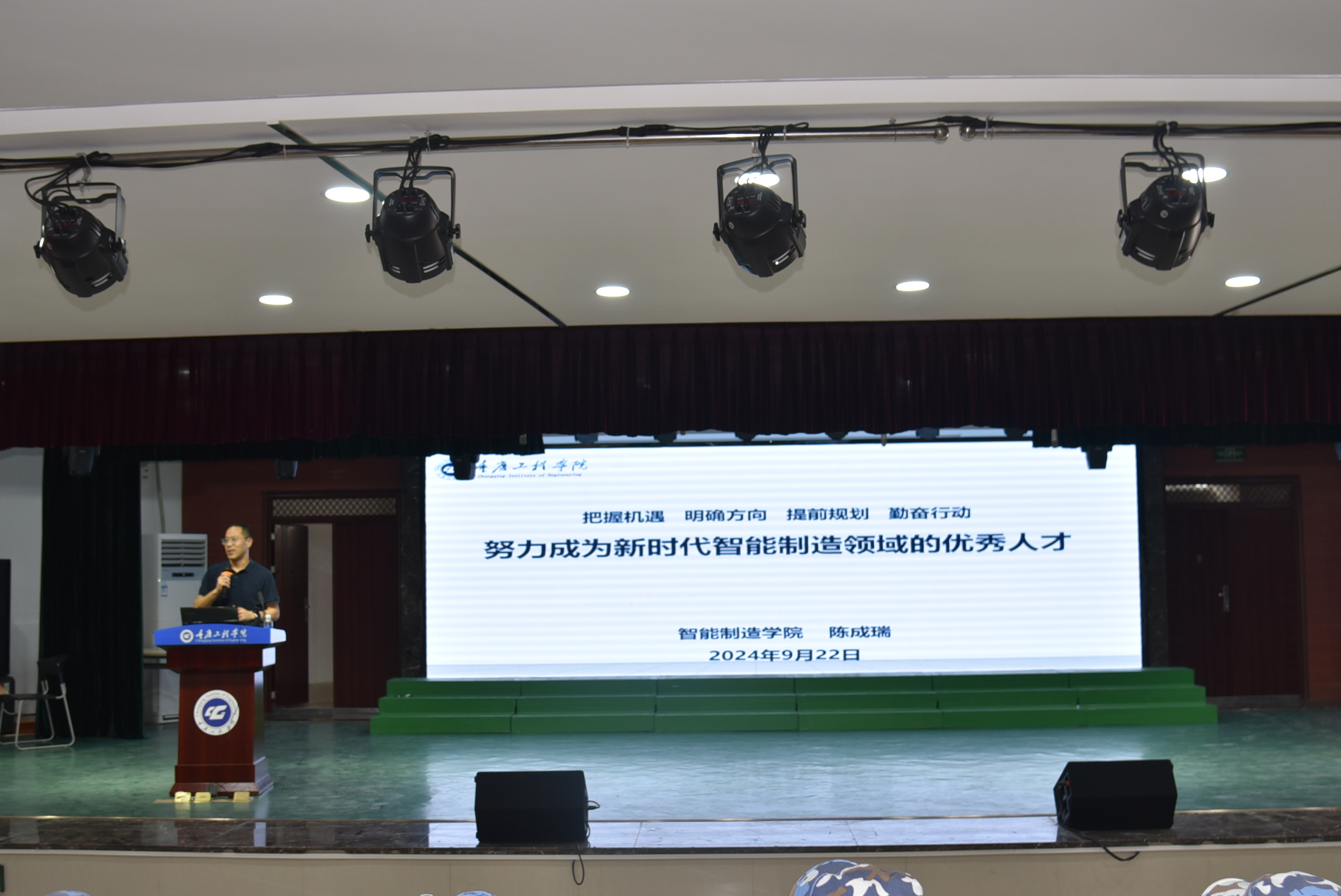 为帮助2024级新生树立专业意识、明确学习方向、激发学习兴趣、更好地融入专业学习,9月22日上午,智能制造学院在双桥报告厅开展2024级新生专业认知教育活动。本次活动由智能制造学院党总支书记谭思宇主持,副院长陈成瑞主讲,院长助理胡聪娟、系主任李洲荣、辅导员杨俊、李小凤及2024级自动化类普通本科、自动化(专升本)全体新生参会。