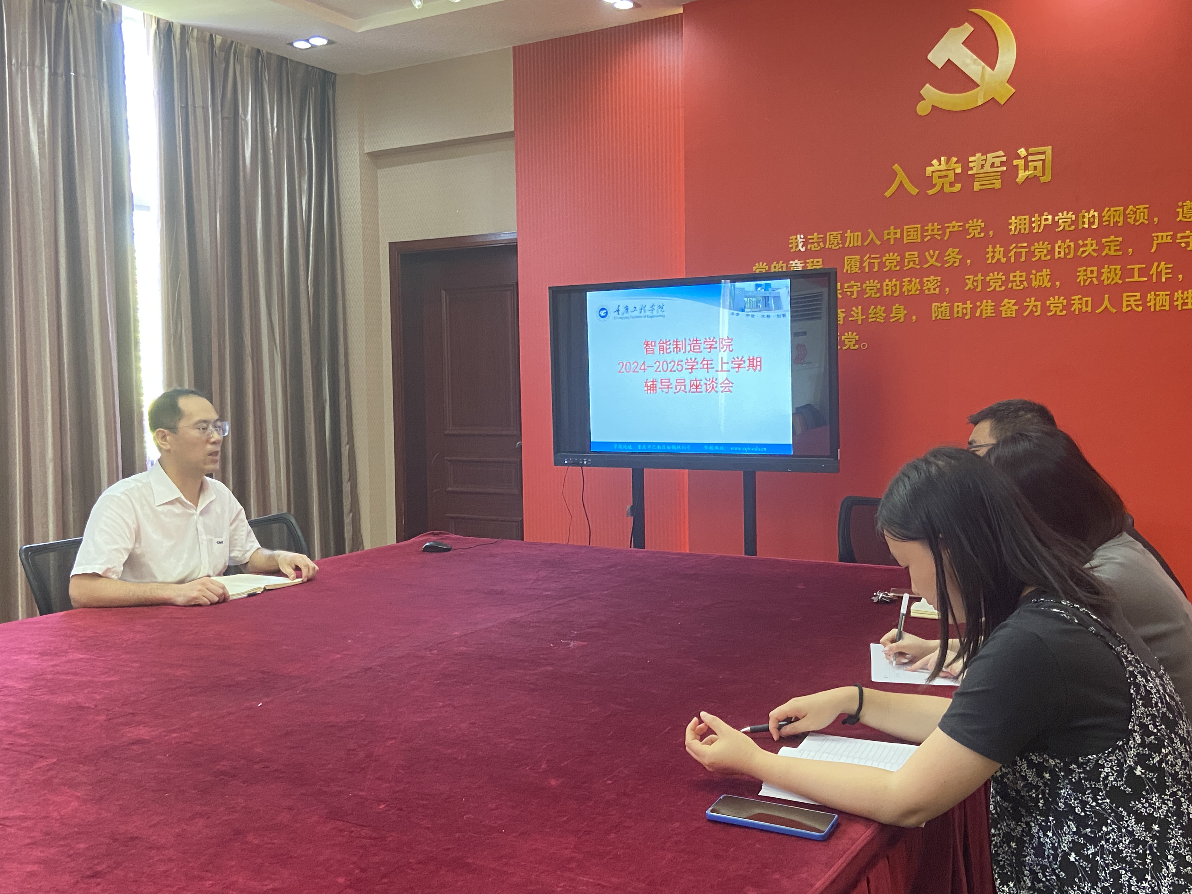为进一步提高学生管理工作水平,促进学风建设各项工作落地见效,9月26日下午,智能制造学院在办公楼二楼党员活动室召开新学期辅导员座谈会。会议由学院副院长陈成瑞主持,学生科全体人员参加。