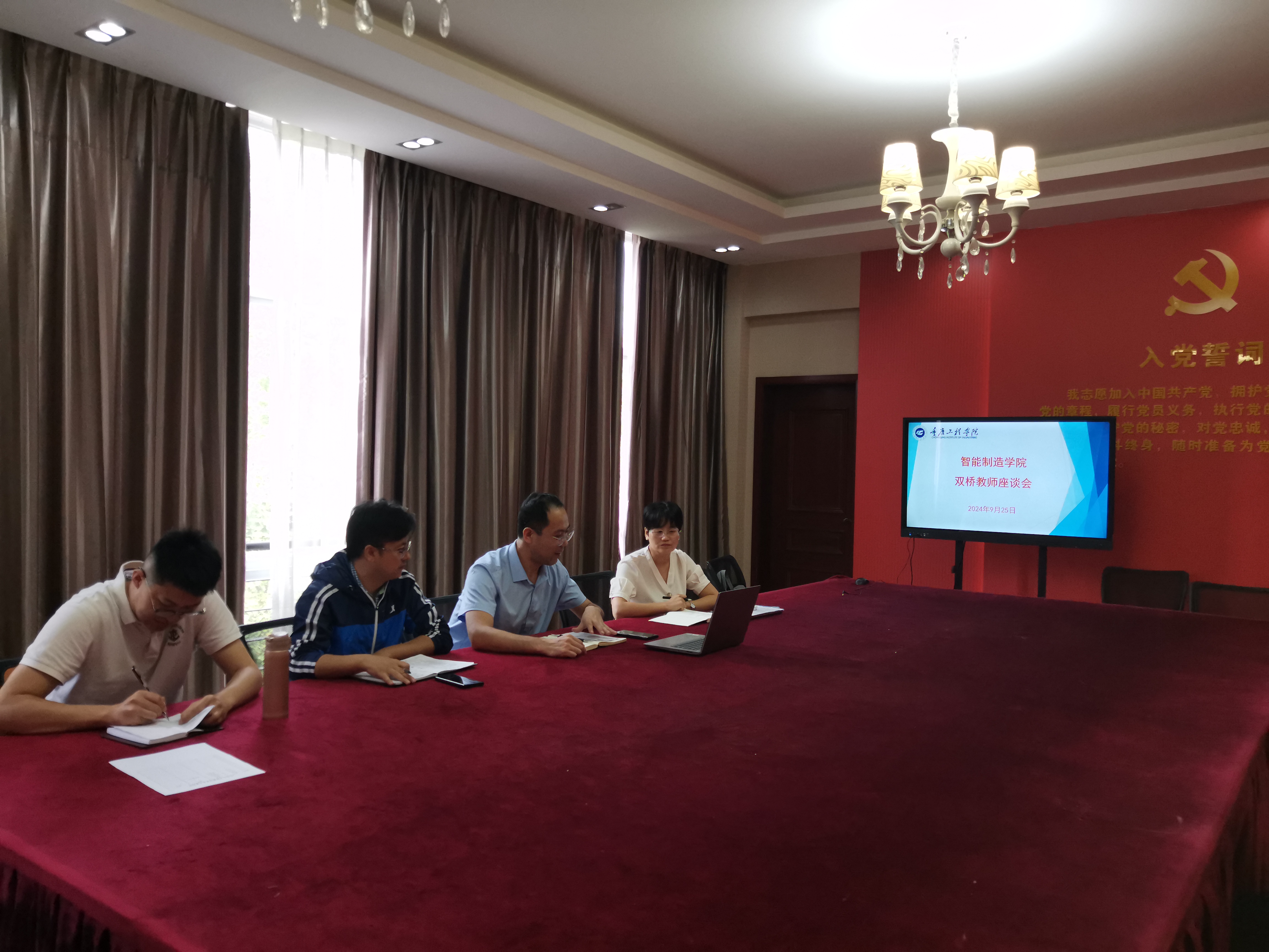 为深入了解双桥校区教学运行情况,确保各项教学工作得以顺利开展,9月25日下午,智能制造学院在办公楼二楼会议室组织召开双桥校区教师座谈会。会议由学院副院长陈成瑞主持,院长助理胡聪娟、自动化系副主任蒋云国、教学秘书陈白银霜以及承担双桥校区教学任务的老师参加。