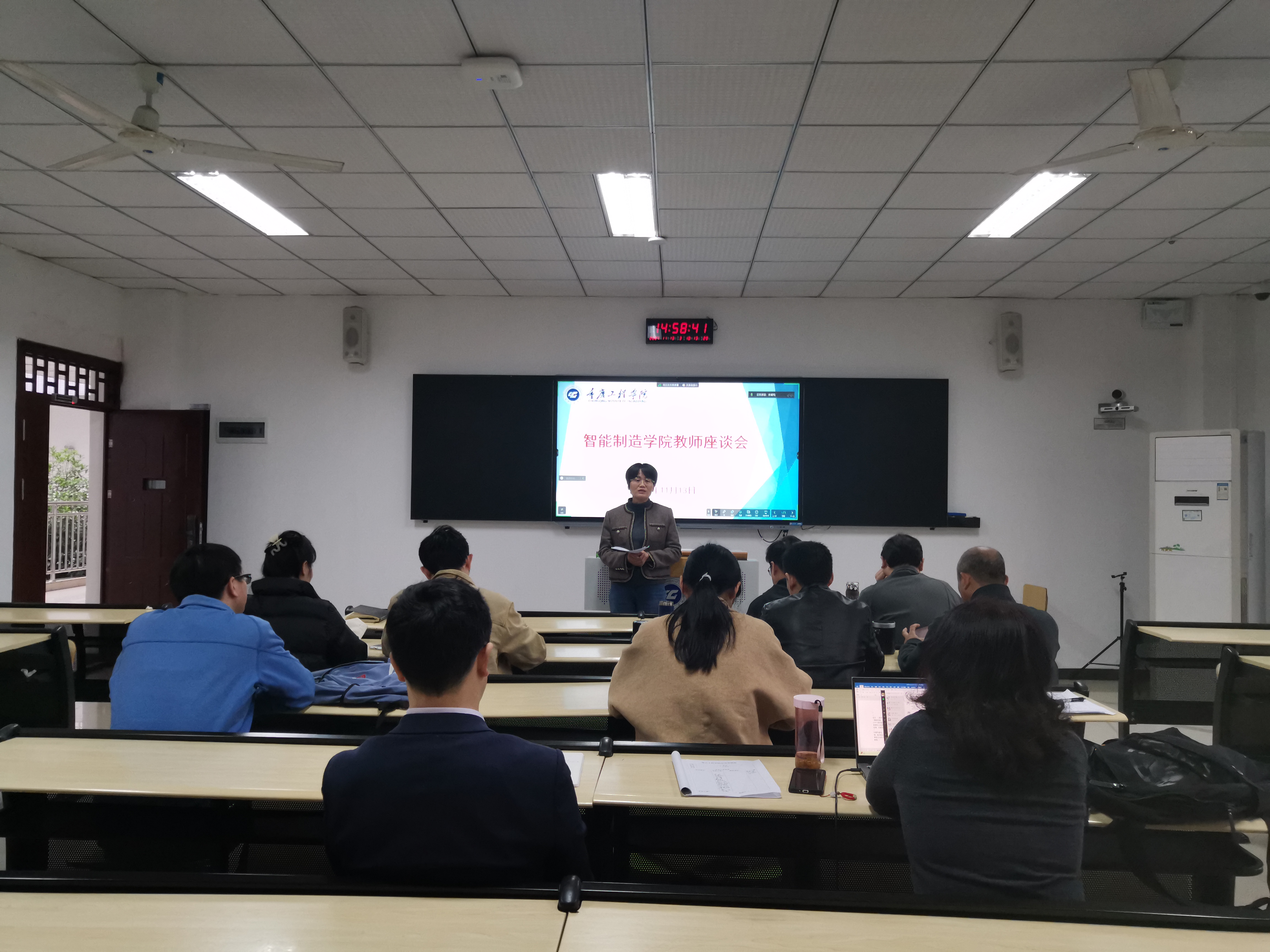 为促进学院教学质量的提升,加强教师间的交流与合作,11月13日,智能制造学院在第六教学楼组织召开教师座谈会。会议由学院院长助理胡聪娟主持,副院长陈成瑞、自动化系副主任蒋云国、智能制造系副主任李洲荣、教学秘书陈白银霜以及全体专任教师参加。