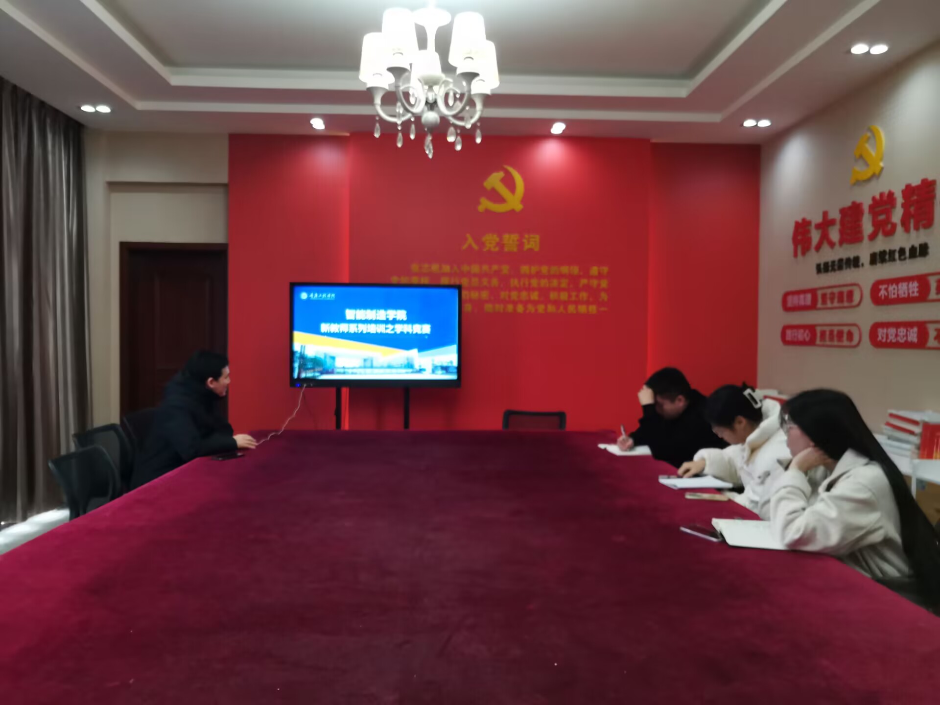 为提升新教师指导学科竞赛的能力,激发学生创新实践潜能,2024年11月13日下午14:00,智能制造学院在办公楼党员活动室组织召开了新教师培训之学科竞赛指导,会议由教师张勇主持,教学秘书陈白银霜以及全体新教师参加。