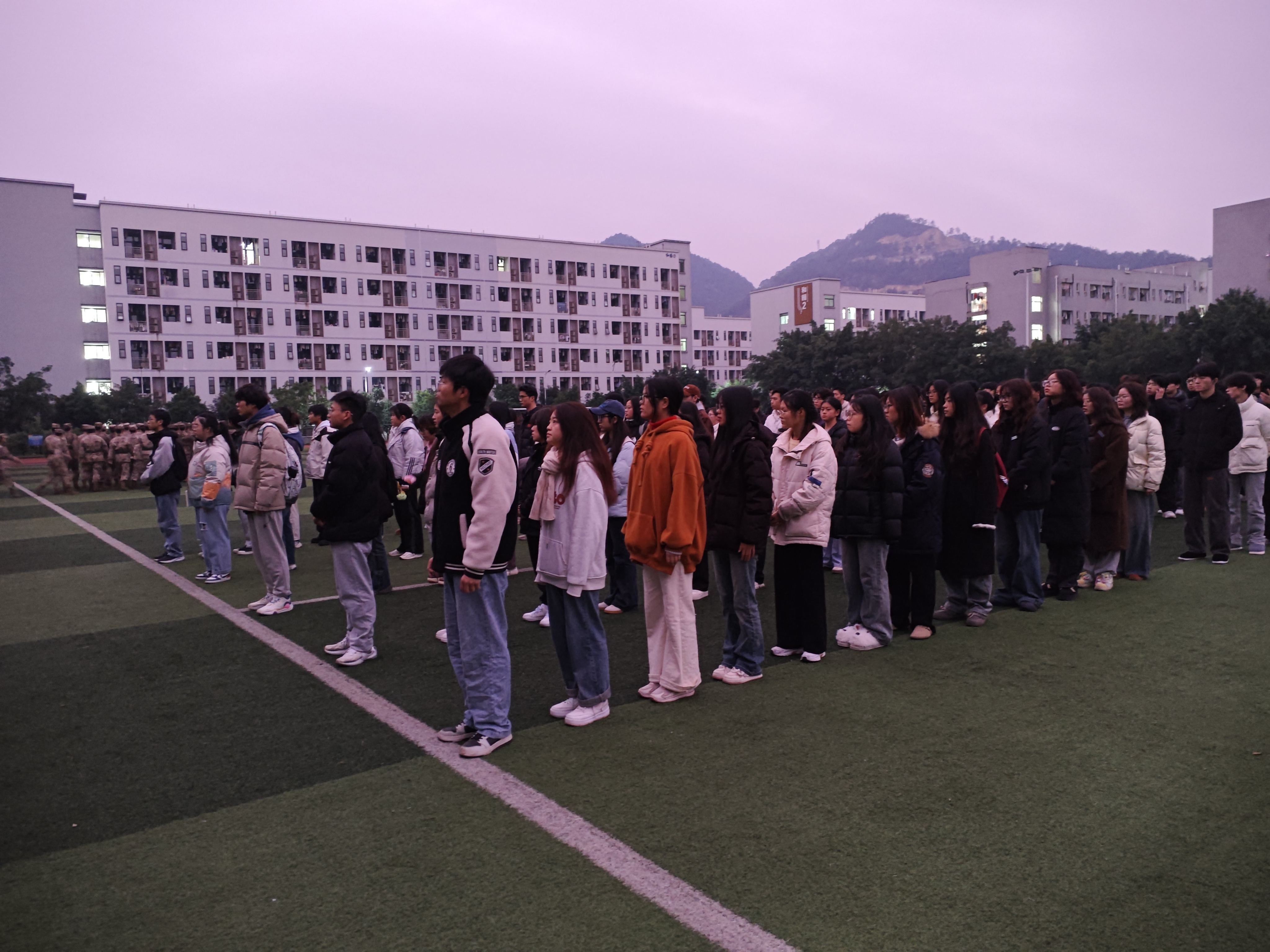 “铭记历史,吾辈当自强。”智能制造学院于12月9日7:20举行了升旗仪式。出席本次升旗仪式的有智能制造学院副院长陈成瑞,党总支书记刘达斌,学生科副科长、团委书记李剑斌,思政教师兼职辅导员张康伟以及2023级辅导员和全体同学。