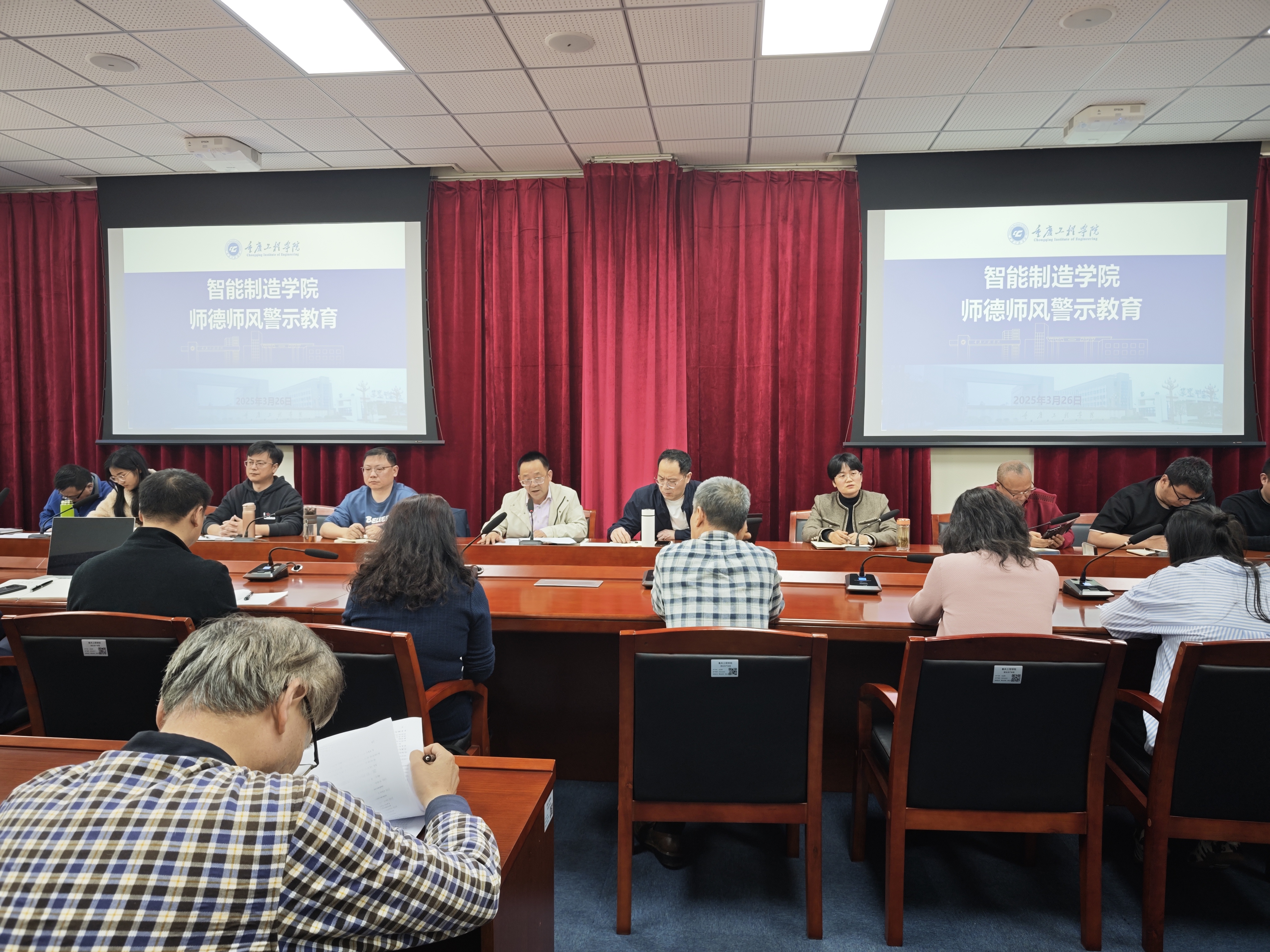 会上,刘书记强调,师德师风是教师队伍建设的核心,是教育强国的根基。全体教师应深刻认识“为党育人、为国育才”的职责,以教育家精神为引领,将教书与育人、言传与身教相统一,以高尚师德塑造学生灵魂,以专业能力培育时代新人。学院严格贯彻师德师风建设长效机制,将师德要求贯穿教师招聘、考核、晋升、评优全过程,依据《重庆工程学院师德师风培育好习惯清单》细化培育目标,明确师德表现作为评优评先、职称评定等重要依据,对师德失范行为实行“零容忍”,确保教师队伍的高素质与专业化。