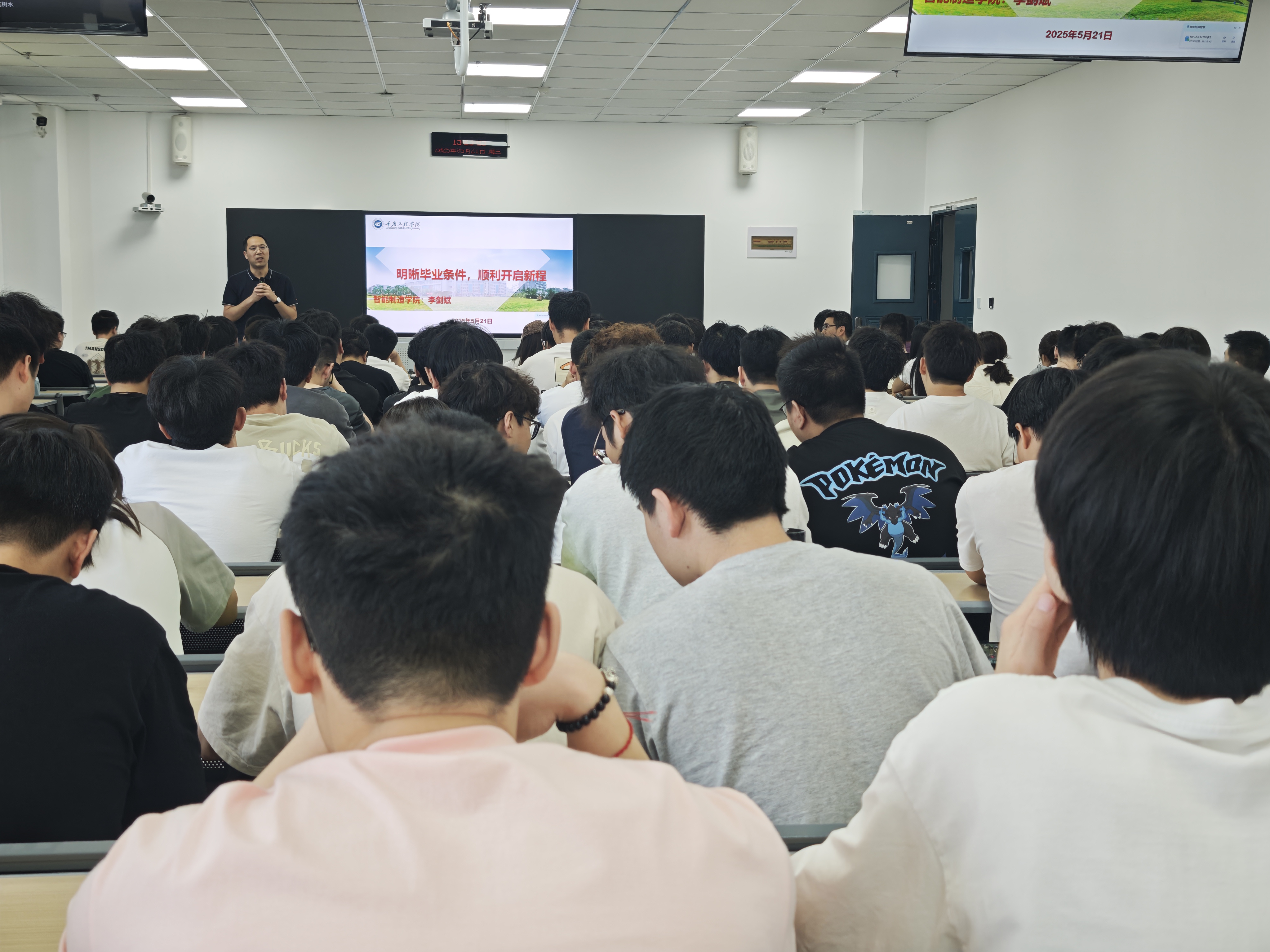 5月21日15时,为帮助学生明晰毕业要求,做好毕业相关准备,智能制造学院就业科科长李剑斌前往双桥校区,开展关于毕业条件及劳动教育、社会实践、实习等重要事项的就业指导讲座。智能制造学院副院长陈成瑞应邀出席,为讲座助力添彩,共同为同学们的求学与职业发展道路保驾护航。