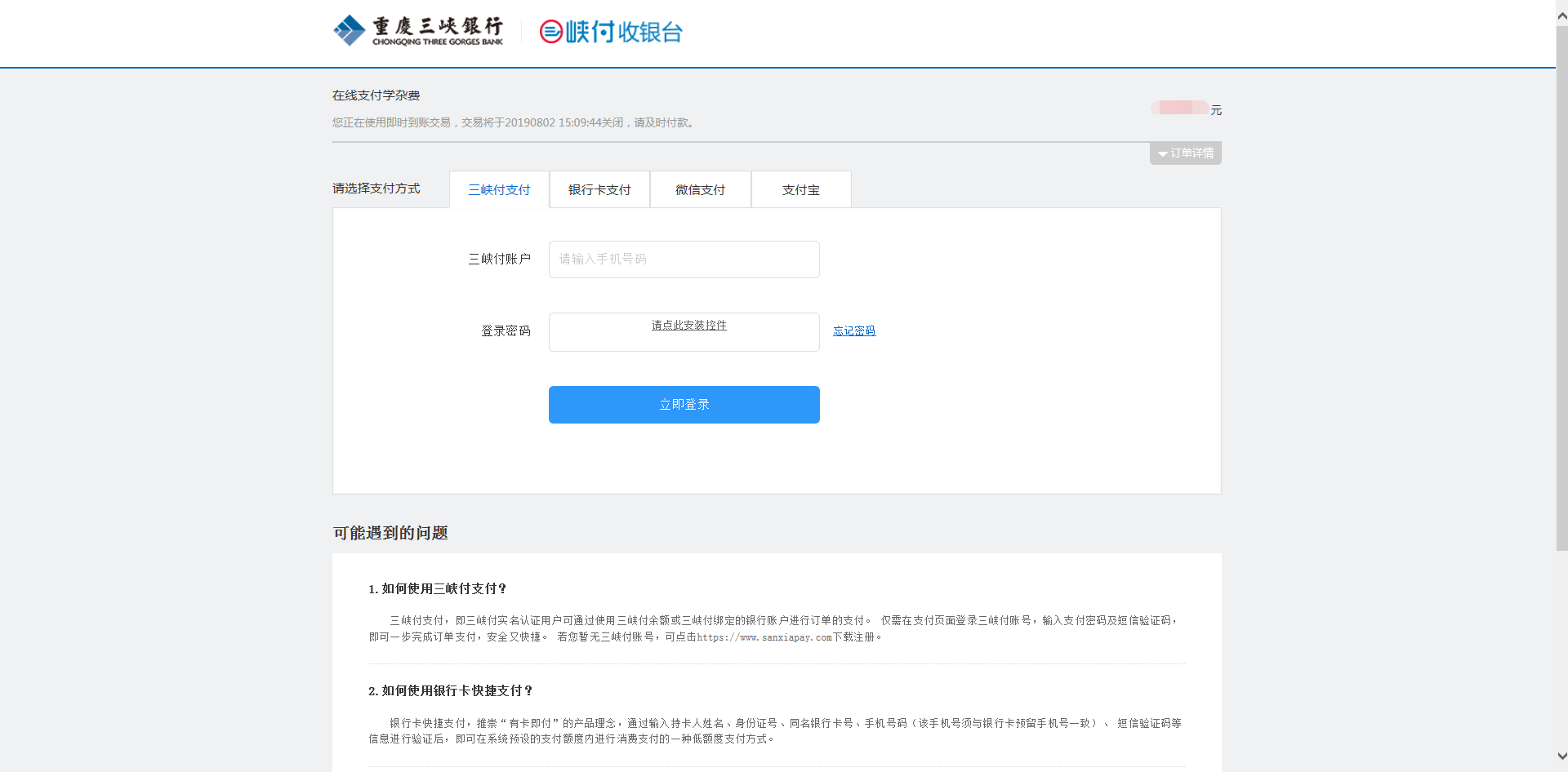 答:网上支付的交易环节由重庆三峡银行三峡付监控进行,确保交易安全。支付平台仅作为用户缴费渠道,无其他功能;银行及三峡付平台不会以任何借口向用户索取支付密码、支付短信等信息。