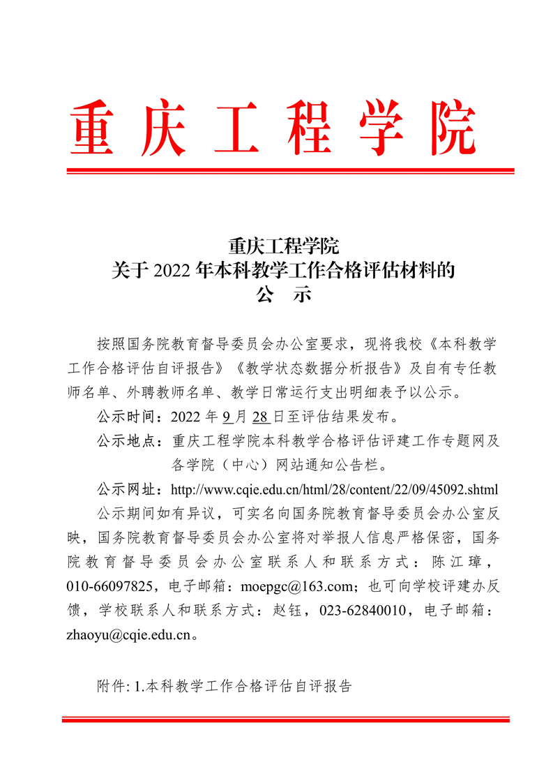 关于2022年本科教学工作合格评估材料的公示