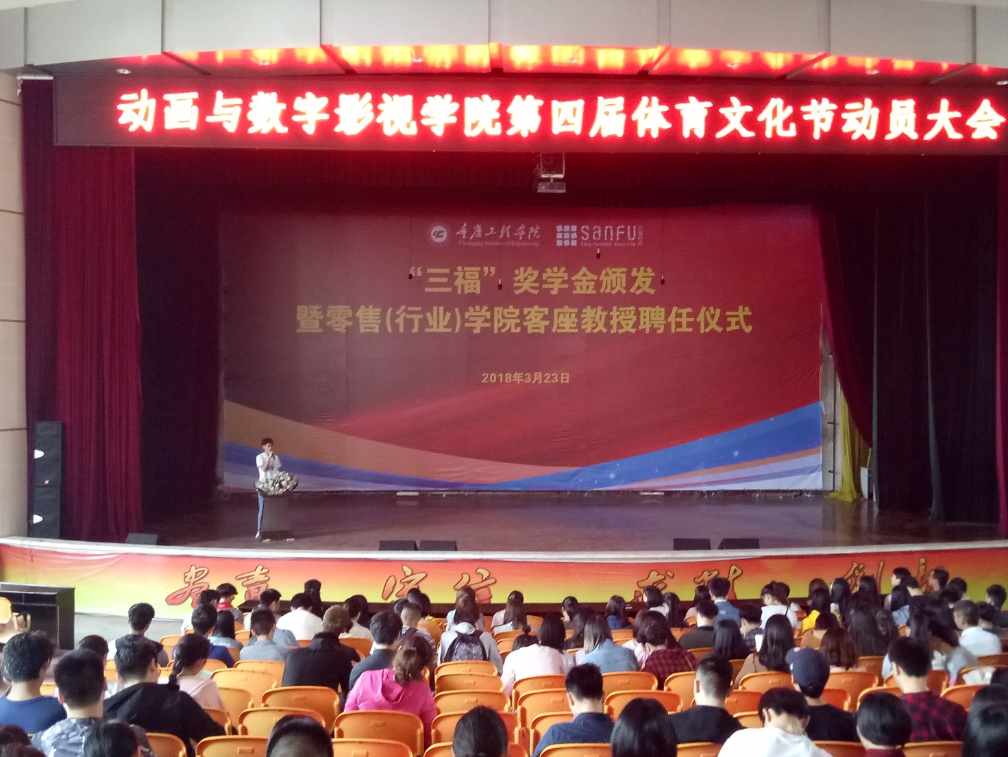 为积极备战我校第四届体育文化节,展现动画学子的精神风貌,2018年4月10日动画与数字影视学院于学术报告厅举行第四届体育文化节动员大会。学院党总支书记徐小辉、全体辅导员老师、各表演队成员、各参赛队队员共计500余人参加了此次会议,本次动员大会由团委书记刘顺江主持。