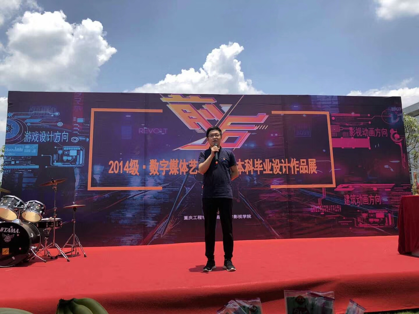 在开幕式现场,数字艺术学院庄涛文副院长发表致辞,他表示此次展览是对同学们四年以来学习成果的全方位检验,也是同学们回馈给母校最好的礼物。毕业创作与毕业设计的水平,标志着当下学院专业教学的质量与状态,同时此次展览也是品评教与学的成果,展示同学们的才华和创意的平台。并希望同学们在人生的路上继续秉承着“尽责、守信、求精、创新”的校训, 带着母校殷切的祈望和期盼,用澎湃的激情打造属于自己的一片亮丽的天空!
