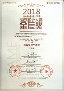 本网讯 (数字艺术学院 聂太良) 第六届中国大学生游戏设计金辰奖暨第三届国际虚拟现实VR/AR大赛在北京电影学院落下帷幕。重庆工程学院数字艺术学院共选拔推荐游戏设计类作品92件参加本次比赛,