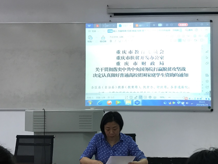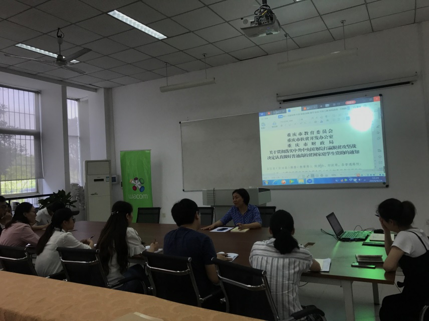 会议认真学习了《习近平扶贫论述摘编》,教育部等六部门关于印发《教育脱贫攻坚“十三五”规划》的通知,重庆市教育委员会《关于实施教育扶贫攻坚三年行动的意见》,传达了《关于贯彻落实中共中央国务院打赢脱贫攻坚战决定认真做好普通高校贫困家庭学生资助的通知》的文件精神。
