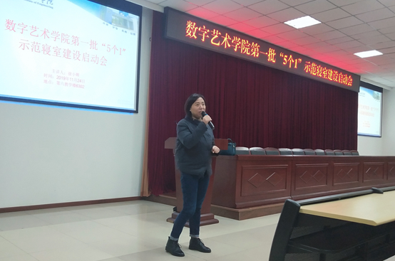 为进一步规范学生公寓管理,形成良好的行为规范,发挥党员的先锋模范作用。2019年11月24日19:00数字艺术学院学生党支部全体党员、预备党员和发展对象在六教302教室参加了徐书记主持召开的数字艺术学院第一批“5个1”示范寝室建设启动会。