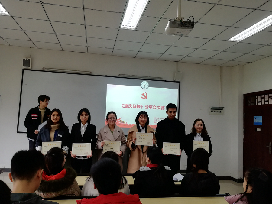为深入学习贯彻习近平新时代中国特色社会主义思想和党的十九大精神,数字艺术学院学生党支部于2019年11月28日在第六教学楼118教室举办了《重庆日报》分享会决赛。此次决赛由学生支部书记、组织委员担任评委,谭仲伟同志主持,任丽等11名同志参赛。