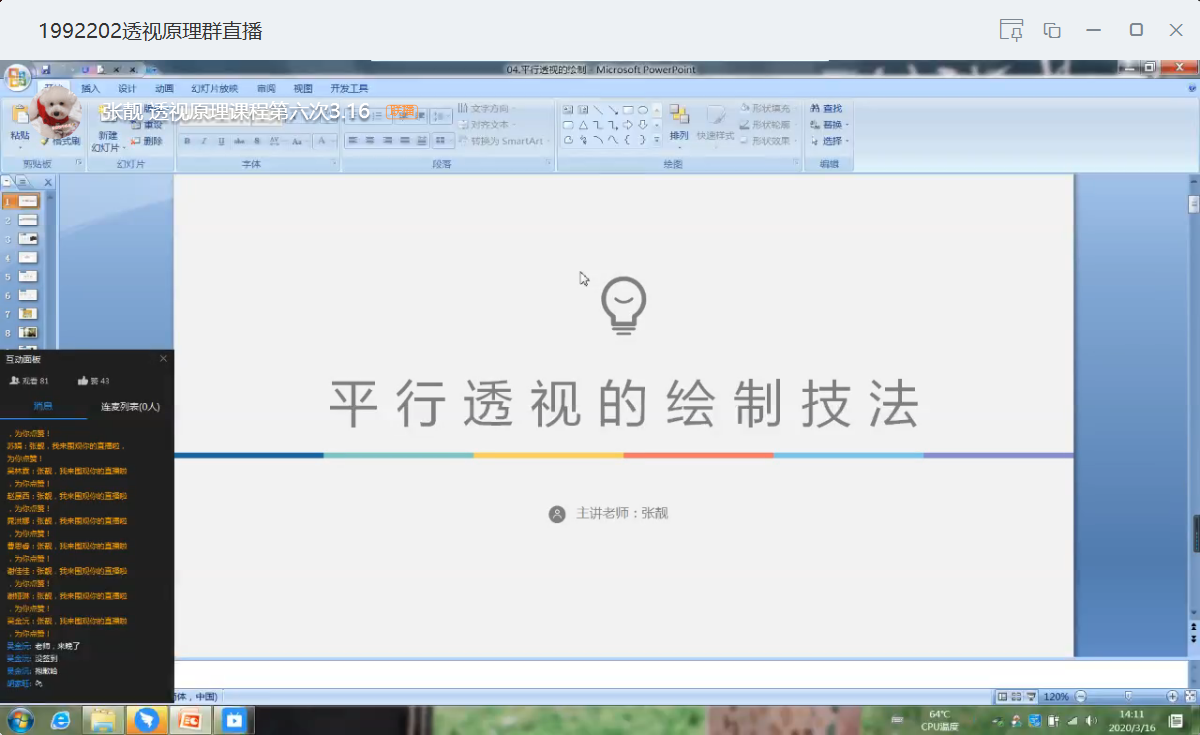 (本网讯 数字艺术学院数字设计系 李佳蔚)2020年3月16日-3月20日,根据重庆工程学院网课教学工作的总体部署,在学院的统筹下,设计系积极响应学院第六届“精彩一课”教学竞赛活动初赛。根据大赛要求系部拟定网络听课时间表,全员积极参与。