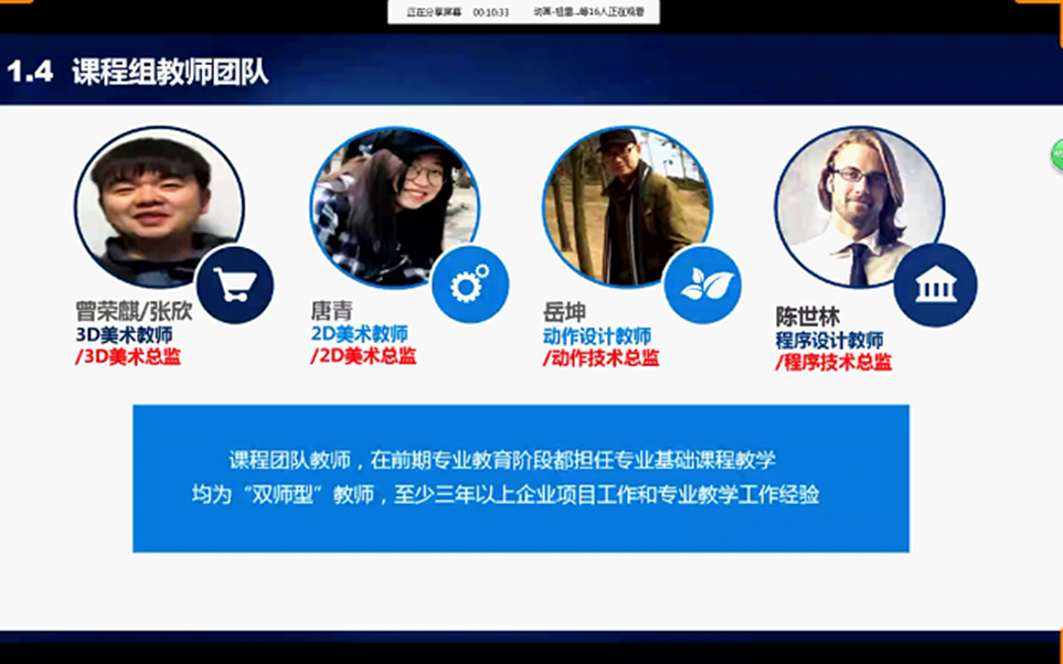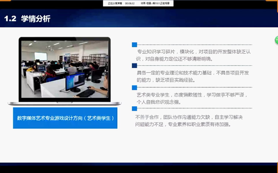 在会议上,聂老师详细讲述了系部对教学团队竞赛事宜,就课程概况、课程组教师团队、教学创新、教学理念、教学方法与内容等进行了逐一的设计汇报。会议上,聂老师谈到了新的理念创新,需要进行课程联动,项目制整合教学内容,注重以学生为本。同时,加强任务驱动和项目主体结合,教学做一体化的教学方式,产教结合、校企协作、技艺融合等。会议中课程组教师团队成员分别进行了2D\3D等各课程的专业详解。聂老师也提出“教师+学生=技术总监+岗位员工”的课程组织管理创新模式。