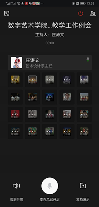 2020年3月4日下午,数字艺术学院通过网络电话会议形式组织召开疫情防控期间线上教学实施一周总结网络会议。会议由办公室主任孙建主持,杨开富院长、庄涛文副院长、各系教学督导、正副主任、教研组长和综合办公室相关人员参加了本次会议。