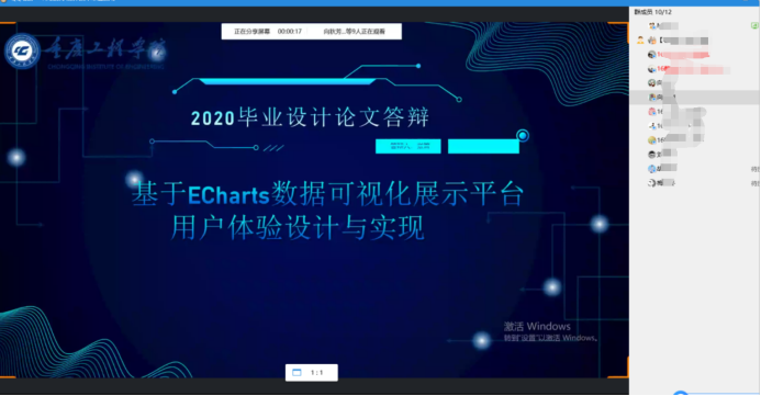 此次在线预答辩分为8组进行,每组通过QQ群,利用屏幕分享功能进行网络预答辩。整个预答辩由数字艺术学院的统筹计划,数字媒体技术系石磊主任负责具体安排,数字媒体技术专业全体指导教师及本专业毕业班全体同学参加了预答辩。