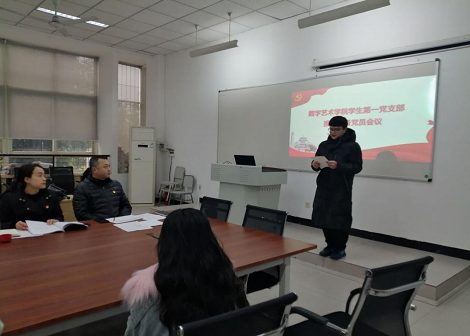 2020年12月29日12:50,数字艺术学院学生第一党支部在5207会议室召开接收预备党员大会,讨论唐杰、代雪、谭静、李维唯、程娇等5名同志的发展问题。