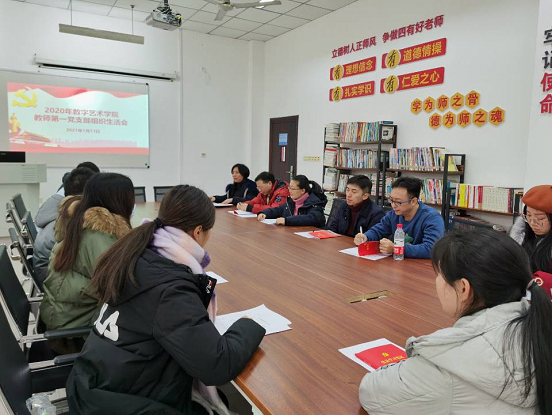 2021年1月13日下午13:00,重庆工程学院数字艺术学院教师第一党支部于5207教室召开年度组织生活会和开展评议党员工作会议。本次会议由数字艺术学院教师第一党支部聂太良书记同志主持,本次会议的主要内容包括以下三个方面:数字艺术学院教师第一党支部书记2020年度工作汇报、组织生活会以及民主测评。