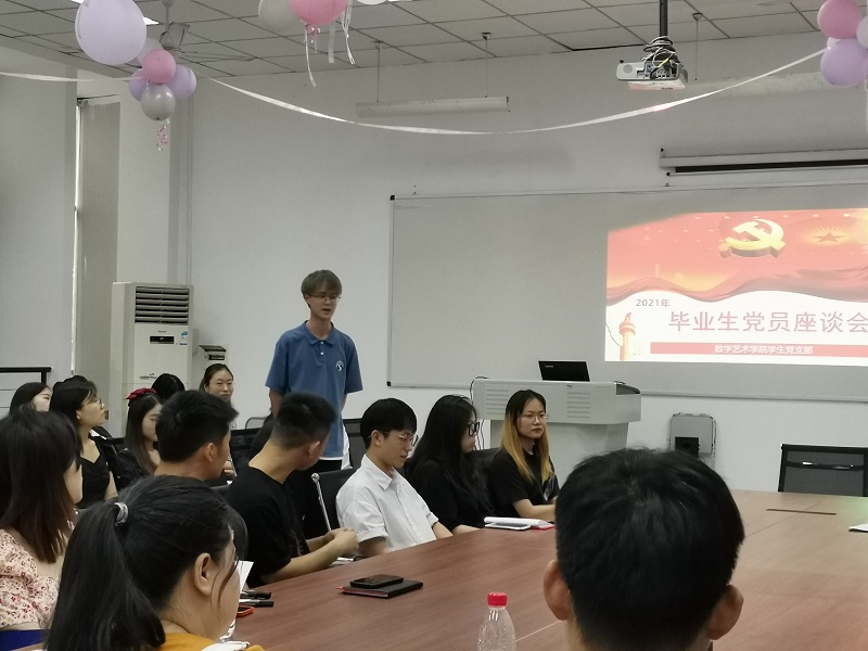 2021年7月1日,在临近毕业之际,数字艺术学院党总支举办了“2021届毕业生党员座谈会”活动。数字艺术学院党总支书记徐小辉同志、学生党员实践教育中心的全体成员参与了此次活动。