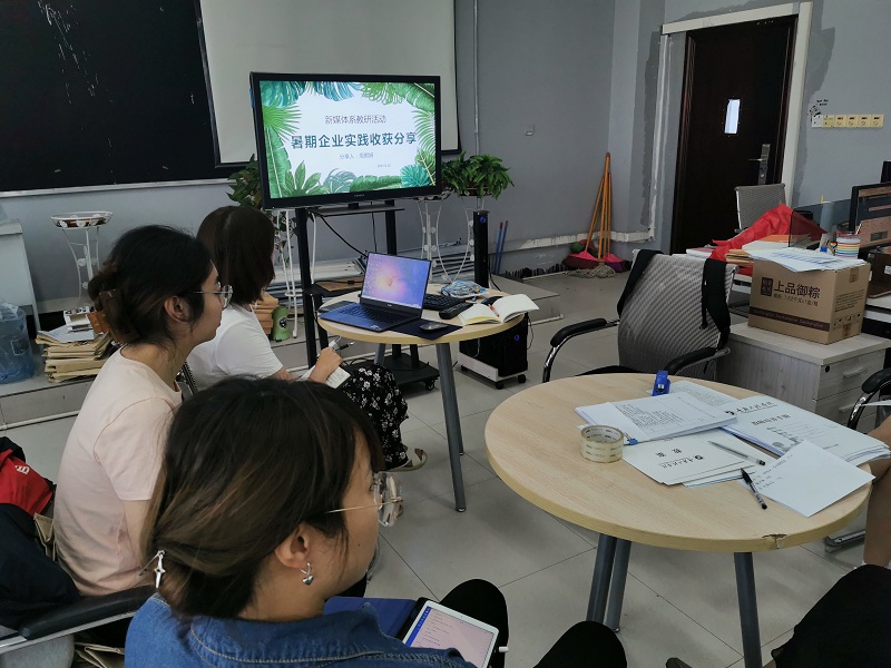 副教授傅潇老师就自己暑期参加的“1+X融媒体内容制作线上师资培训”内容作了汇报,新教师周熙妍也分享了此次暑期重回企业参与活动和一线工作的心得体会。全系教师认真参与,积极互动,共同探讨实践与教学深度结合的具体形式。