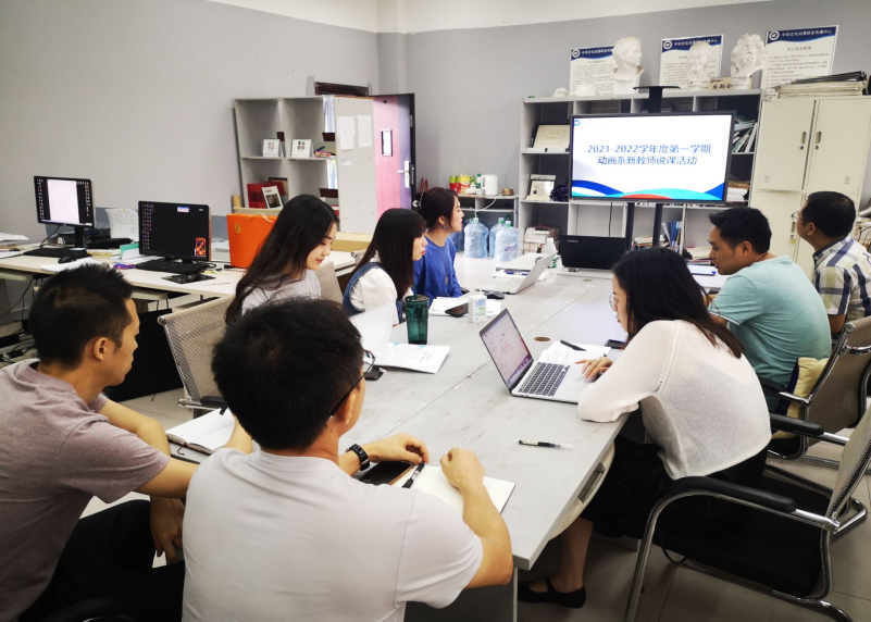 为了给新教师一个展示自我、锻炼提高、交流分享的机会,营造教师间积极进取、互相学习、交流合作的浓厚教研氛围,同时为了全面帮助促进新教师的快速成长、站稳讲台。9月17日下午动画系全体教师在5307办公室开展新教师说课教研活动。活动邀请学院教务科长赵正伟,本次活动由动画系教研室主任周梁主持。