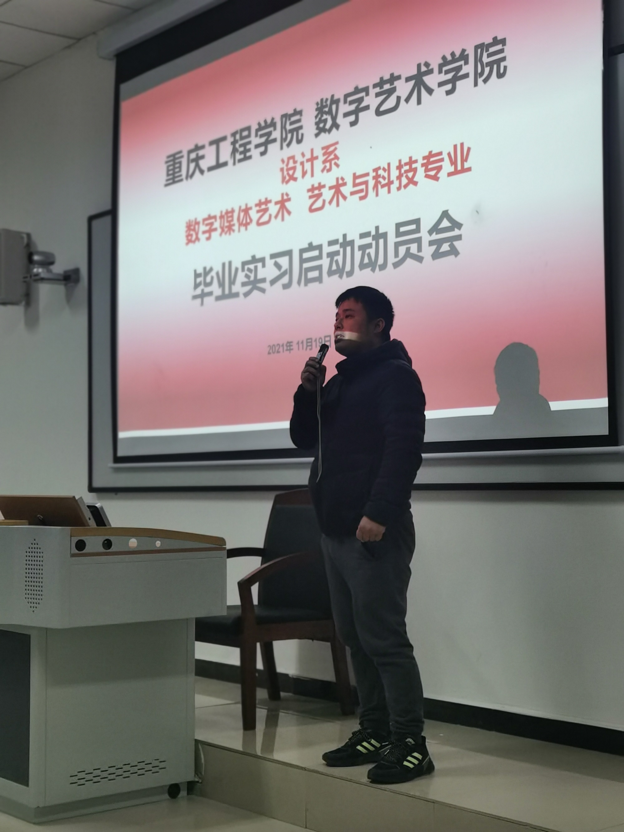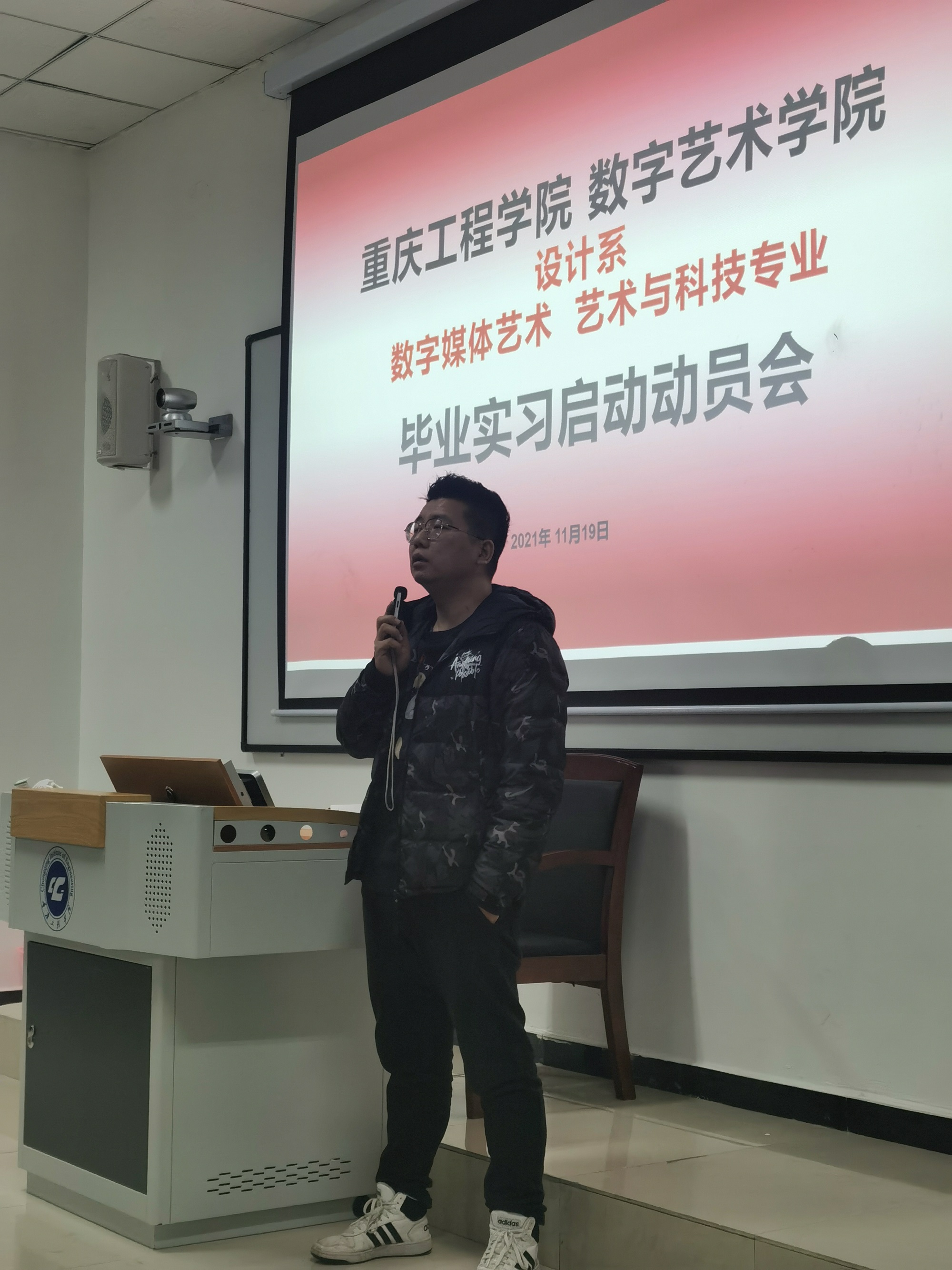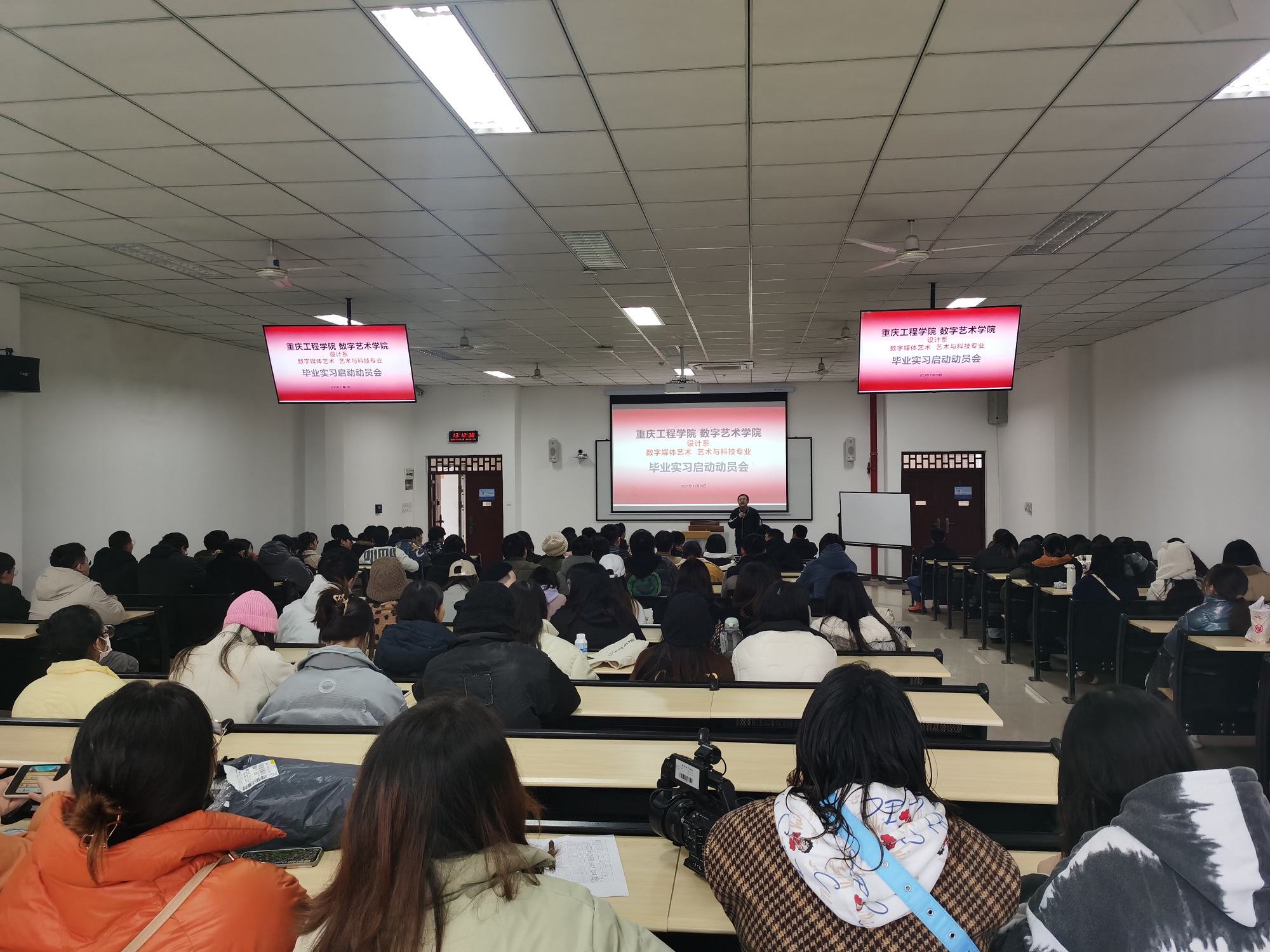 根据数字艺术学院教学运行安排,为确保设计系所辖数字媒体艺术专业与艺术与科技专业毕业实习工作的顺利有序开展,引导学生做好实习前的各项准备工作,进而保证后续的实践工作和就业工作。2021年11月19日下午,设计系在第六教学楼304教室召开2022届毕业生毕业实习动员大会。学院教务科科长赵正伟、系部副主任聂太良、就业科科长周杨及学院2022届全体毕业生参加了大会。
