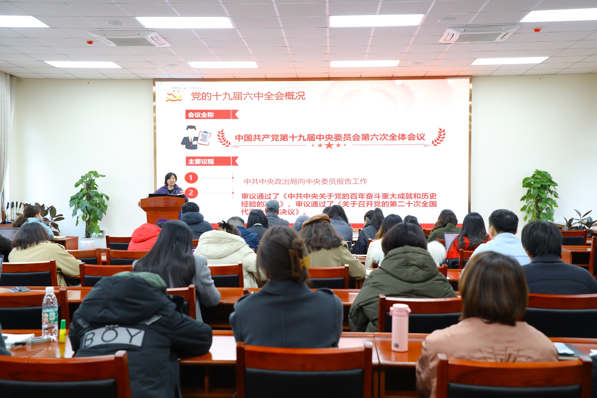会上徐书记指出,党的十九届六中全会精神是在重大历史关头召开的一次具有重大历史意义的会议,习总书记的讲话内容丰富、思想深邃,具有很强的政治性、思想性、理论性、指导性。徐书记从党的十九届六中全会概况和全会公报内容两个方面开展对十九届六中全会的深入学习。解答为何要总结党的百年奋斗的重大成就和历史经验的问题,详述中国共产党百年奋斗的历程,中国共产党百年奋斗的历史意义以及宝贵经验。要求全体教师要深刻认识党的百年奋斗的光辉历程、辉煌成就、历史意义、历史经验,把握以史为鉴、开创未来的重要要求,把学习成效转化为实际行动,始终坚持党的领导、坚决做到“两个维护”,始终高举思想旗帜、笃信笃行科学理论,始终坚定理想信念、发扬斗争精神,以更加昂扬的姿态迈进新征程、建功新时代。