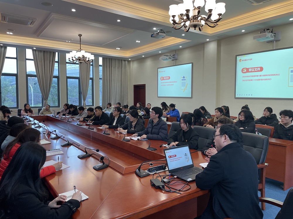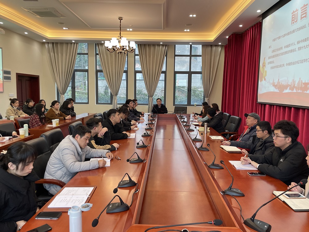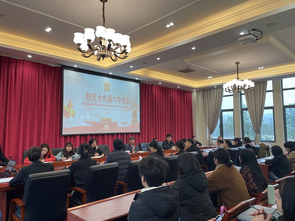 2022年1月6日下午1点,在行政楼第五会议室党委副书记张业平为数字艺术学院作十九届六中全会精神宣讲。本次宣讲分成学习心得交流座谈会和主题宣讲两个环节。参与座谈的有学院主要党务干部、教师党员代表以及学生各阶段党性分子代表。
