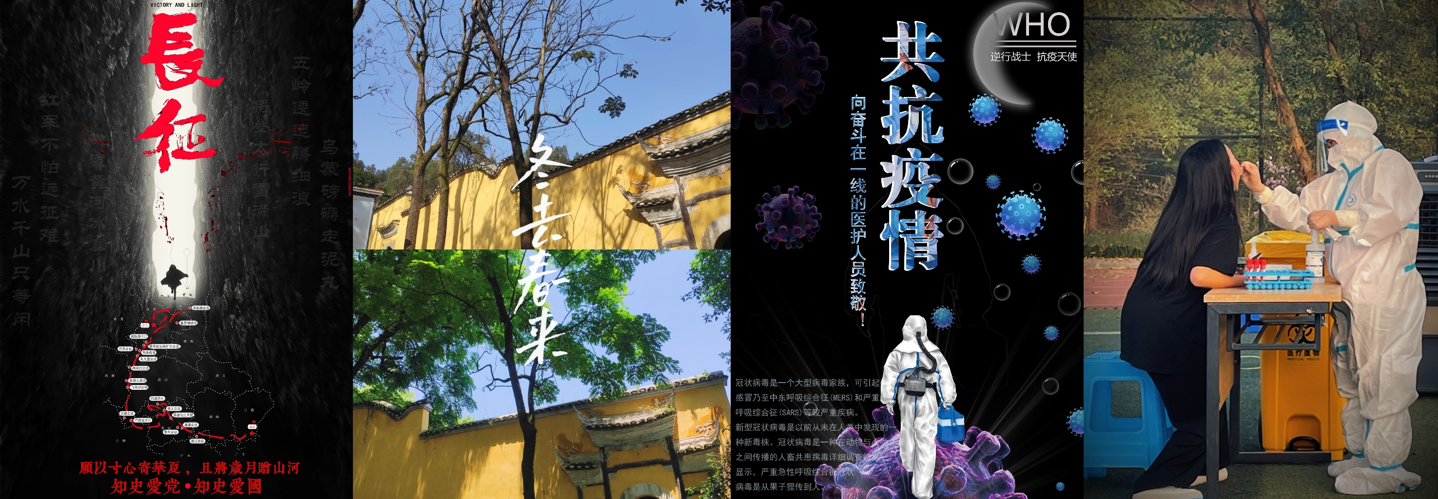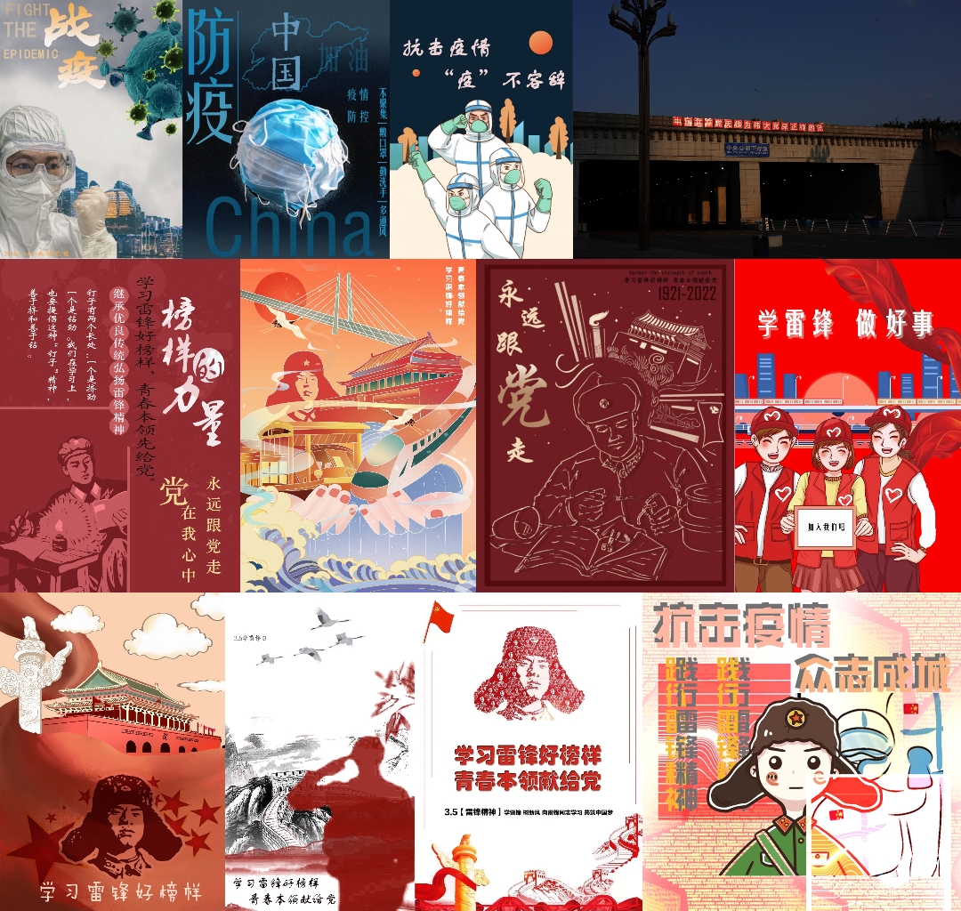 同学们充分利用自己的专业知识和技能,采取海报、板绘、动画、摄影等多种形式,发挥自身特长,泼墨挥毫,各施技艺,为本次展出呈现了一场色彩纷呈的艺术视觉盛宴。