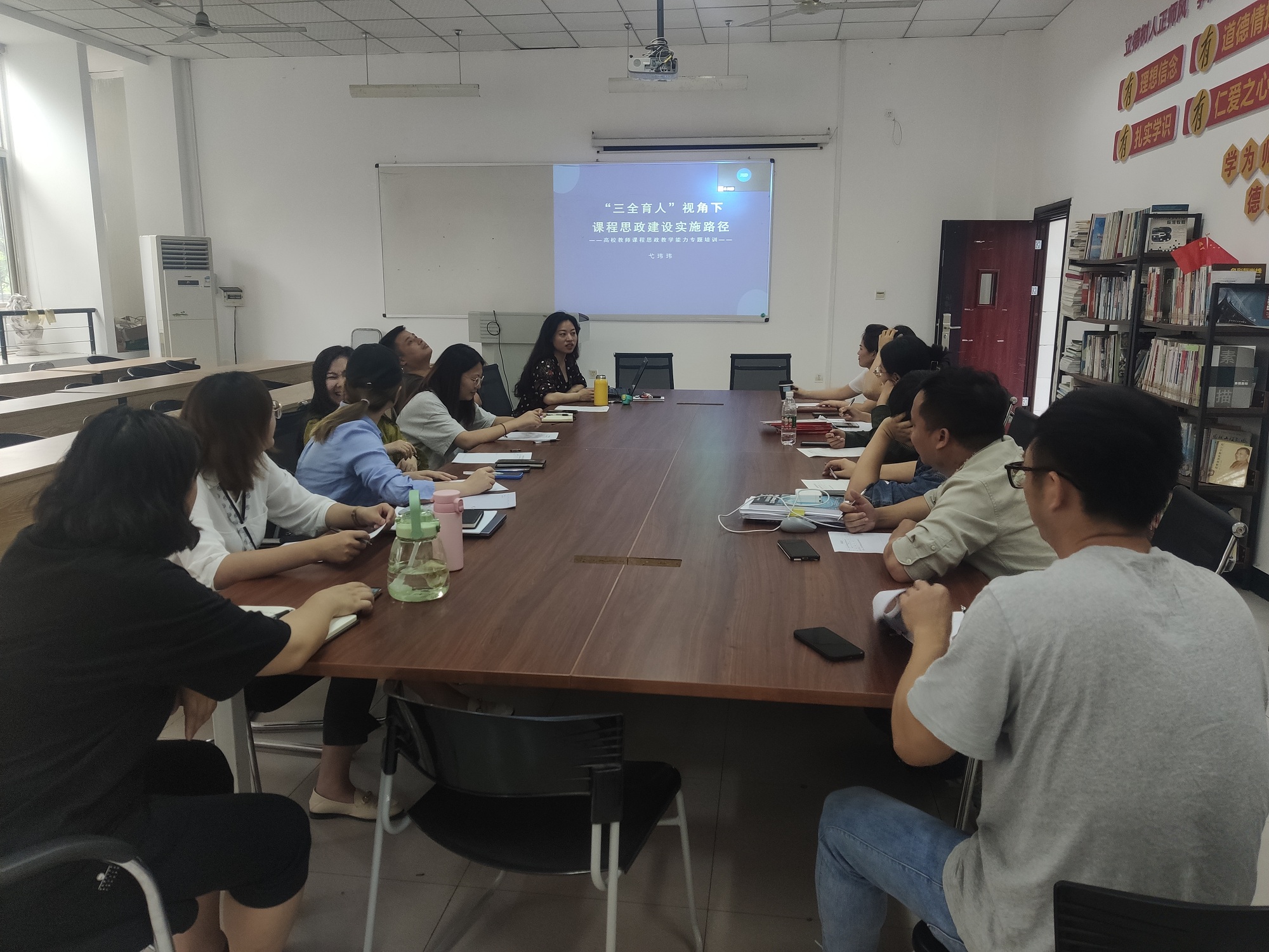 此次培训主题为“三全育人”视角下课程思政建设实施路径,弋玮玮教授从“三全育人”与课程思政的关系、课程思政可以做什么两个问题为切入点,提出了做好课程规划、融入教学环节,挖掘思政元素,发挥专业特色,丰富教学方式,有效思政融入等设计思路,并结合自身教学实际,介绍了专业课程思政建设探索与实践方法,如故事讲授、案例分析、实践参观、结合时事等教学方法。