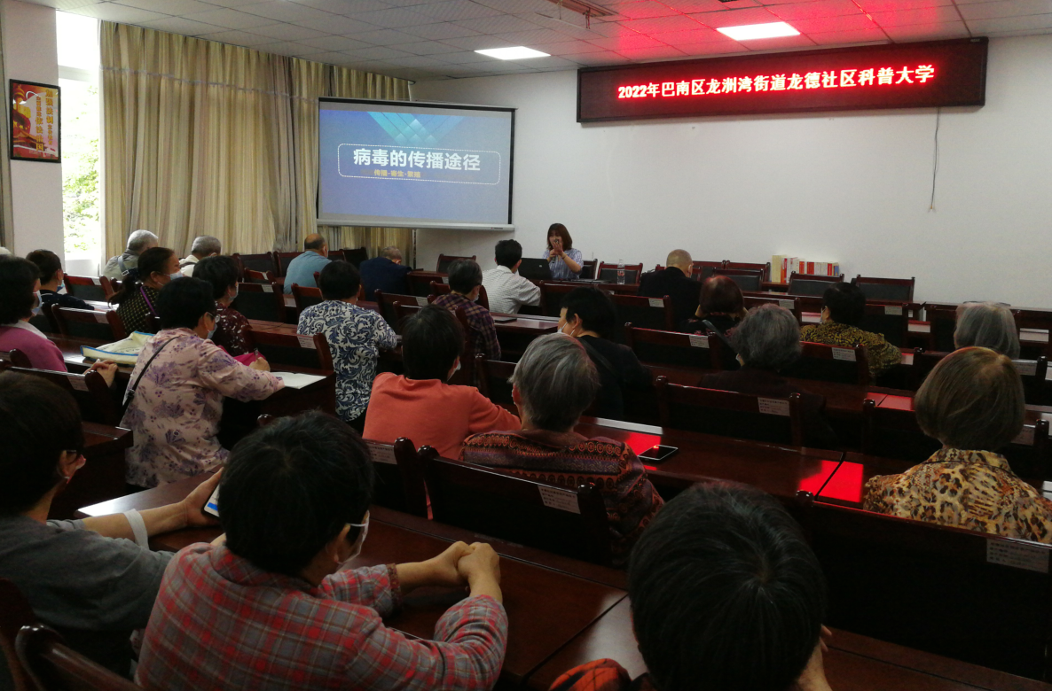 2022年4月19日、4月22日、5月20日,中华文化动漫传播中心成员杨明慧副教授在巴南区龙洲湾街道龙德社区、龙洲湾街道龙锦社区、巴南区莲花街道西园社区开展了以“科学防疫”动画科普宣传讲座,共计参会130余人。活动以增强公众对病毒传播途径认知、对新型冠状病毒常见问题解释、做好日常防疫保护为目标,提高大众对病毒的警惕,做好自身防护保护家园。活动现场杨明慧老师用问卷调查、动画调动社区居民的积极性,参与度,并讲解了正确佩戴口罩、演示七步洗手法等。本次讲座活动通过各类新媒体形式向大众科普传播科学抗疫的重要性,通过向社区居民的大力宣传的过程从而激发社区民众在抗疫的科学性、有效性,提升社区居民主动参与全民抗疫的责任心。