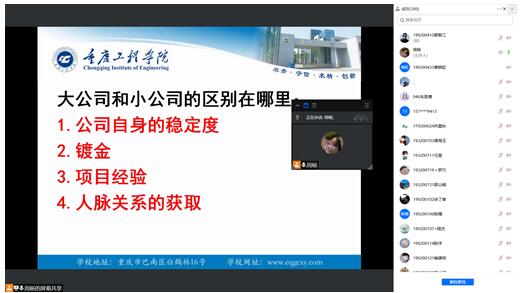 最后本次讲座在学生的提问与老师的解答中结尾,此次讲座丰富了本届学生对就业的认知让,为学生提供选择的方向,清晰自己了自己的就业道路。