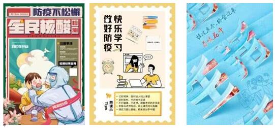 这是以呼吁按时采集核酸、认真上好网课的海报及摄影作品。疫情之下,稳住自己,方可唤回这熟悉的“人间烟火”。