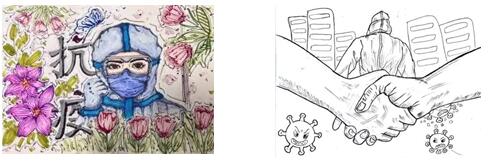 本网讯(文/图 数字艺术学院周思琦)疫情牵动人心,艺术凝聚力量。特殊的11月,重庆全面的疫情攻坚战打响了。为致敬在疫情中的逆行者、勇于奉献的志愿军,数字艺术学院学生第二党支部在11月开展了“以艺战疫,数艺学子在行动”主题党日活动。期望通过创作抗疫题材作品,绘画重工抗疫图册,激发同学们抗击疫情的信心决心,向疫情中的英雄致敬,积极学习防疫科学知识,更是要静心上好特殊时期的网课。数字艺术学院学生第三党支部全体成员以艺术作品表达战疫决心,为重工加油!以下是部分代表作品展示: