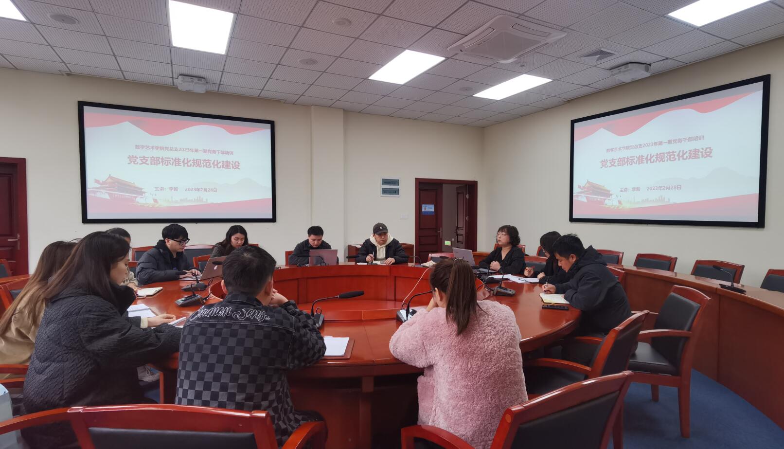本网讯(文/图 综合办公室李毅)2月28日,数字艺术学院党总支开展2023年第一期党务干部培训,学院各党支部党务干部共计11人参加,培训会由专职组织员李毅主持。