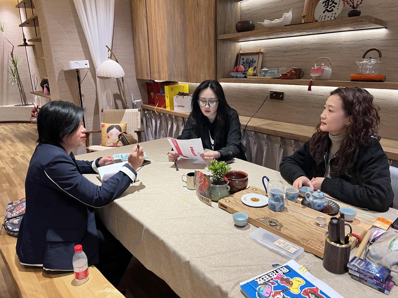 考察结束后,张小玲一行走访重庆森特文化传媒有限公司,与钱鸿伊总经理等进行了深入的沟通交流。本次走访双方已顺利完成横向项目的签订,公司不仅十分重视我校新媒体创作中心学生的培养,而且充分肯定我校教育水平,并从企业角度对人才培养方案提出了宝贵的建议。同时,钱鸿伊总经理也对同学们提出了殷切的期望,希望同学们能够在成长中进步,认真感悟。