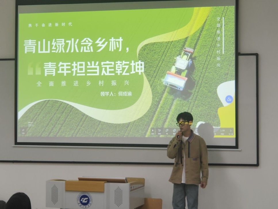 本期活动由何成渝同志领学,以“青山绿水念乡村,青年担当定乾坤”为主题,从中国的乡村振兴出发,讲述了党带领中国乡村不断发展创新的历史。学习为乡村振兴奉献青春年华的有为青年,他们放弃优越的城市工作,毅然返乡,为了乡村的振兴而奋斗,学习他们吃苦耐劳,甘于奉献,勇担责任的精神。何成渝同志呼吁大家保护乡村环境,回望家乡的发展,做对时代有用的青年。
