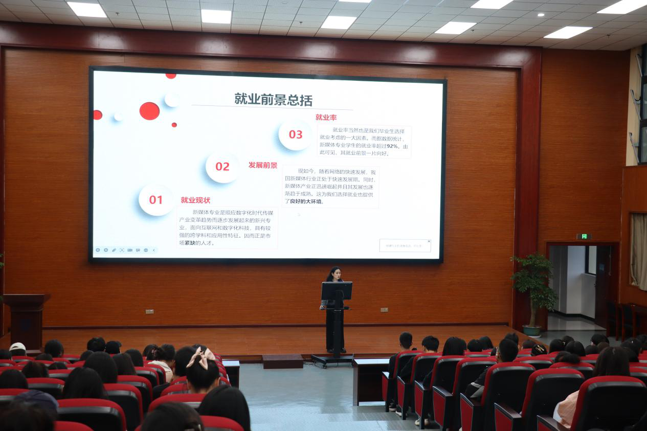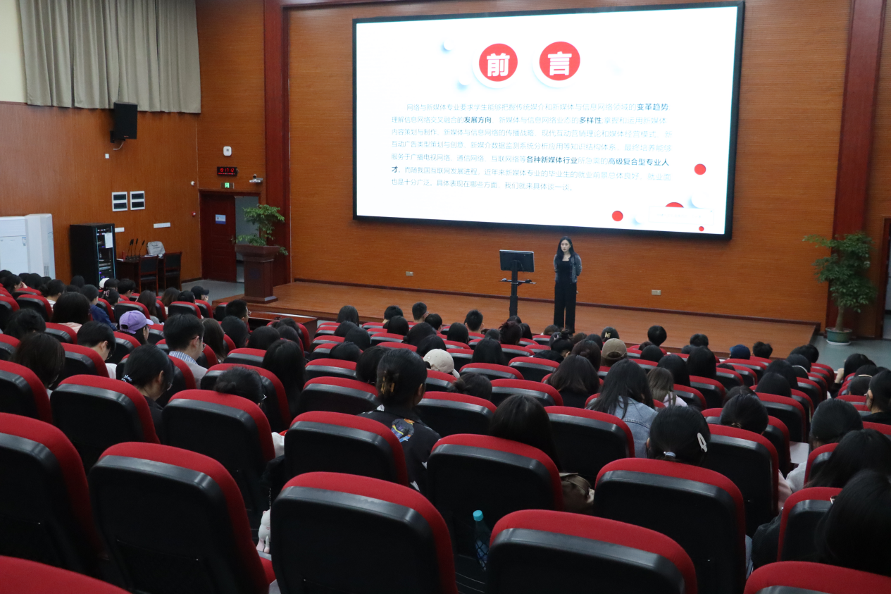 本网讯(文/图 新媒体系周熙妍)为帮助网络与新媒体专业学生更早更好的了解当前就业形势,提前做好求职就业准备,2023年4月28日,数字艺术学院新媒体系专业老师周熙妍在第七教学楼807报告厅开展职业规划与就业指导讲座。