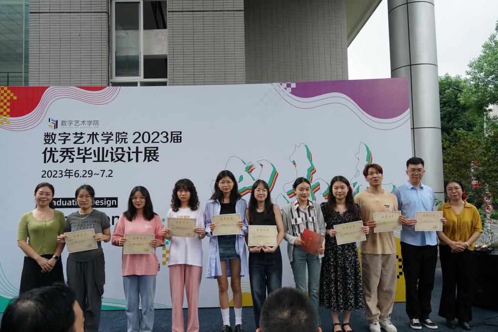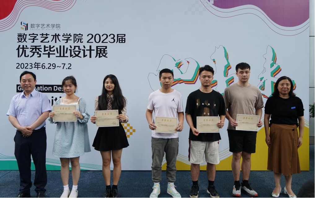 紧接着,数字艺术学院副院长庄涛文宣布了本次毕业设计作品展的获奖名单,并邀请领导和嘉宾为获奖者颁奖。获奖毕业生代表表示,很高兴看到自己的毕业作品得到大家的喜欢,感谢老师们的精心指导,希望今后能够带着自己的专业所学继续在人生的道路上砥砺前行。