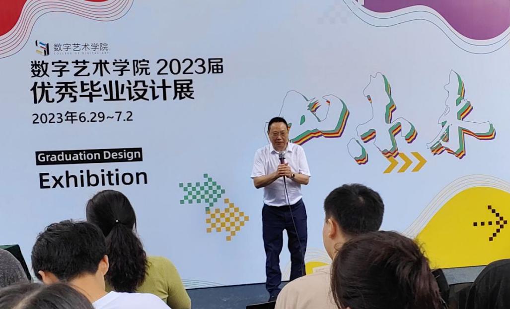 随后,谭明术书记和张业平副校长宣布数字艺术学院2023届本科毕业设计作品展酒会正式开始。