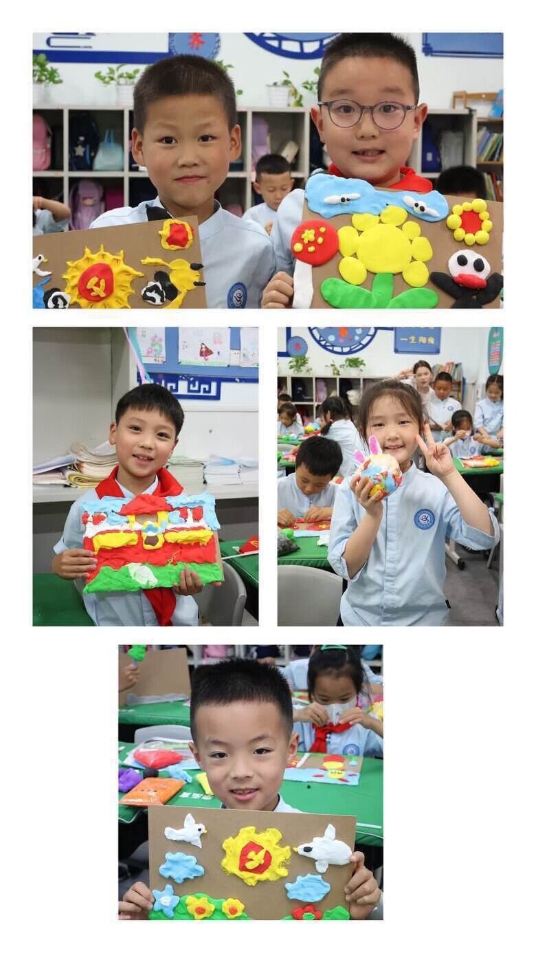 活动第二项:童心致敬党--美术知识+手工课。此环节分成四个小组,由党员老师们分组带领小朋友们一边学习美术小知识,一边围绕童心向党主题制作小手工,如“小手绘党旗、童心爱党、对党的祝福”等。大家的作品很精彩。