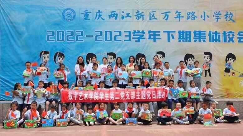 6月12日下午,数字艺术学院学生第二党支部“大手牵小手”美术支教队走进了两江新区万年路小学一年级二班,开展美术微党课、向党小手工系列支教服务活动。此次活动由支部书记周思琦、组织委员杨道珍、宣传委员谭净带队,支教队党员张伦佳、发展对象陈旺、积极分子王文娟主讲。