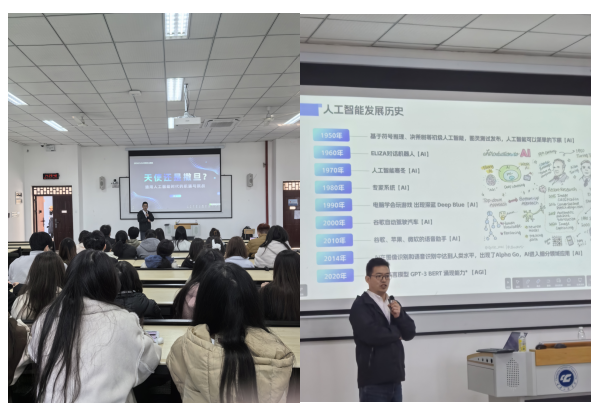 本次讲座由新媒体系教师尚婕主持,重庆星环云有限公司的总经理黄山主讲。黄山,曾任职于微软、惠普等全球顶尖科技公司,是在人工智能领域有着丰富经验的专家。