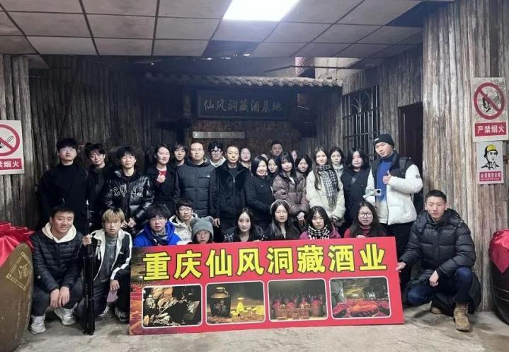 本网讯(文/图 新媒体创作中)2月24日,新媒体创作中心受重庆仙风洞藏酒业有限公司邀请前往永川区重庆仙风洞藏酒基地进行全媒体运营项目实践。此次实践旨在帮助同学们提升专业技能,同时助力宣传酒文化。新媒体创作中心团队在企业负责人的带领下进入仙风洞内进行考察与拍摄。在参观途中,负责人详细介绍了仙风洞藏的规模、历史及酿造技艺。随后,对同学们的拍摄具体事项进行安排,并对同学们的拍摄实践进行指导,协助同学们完成拍摄任务。