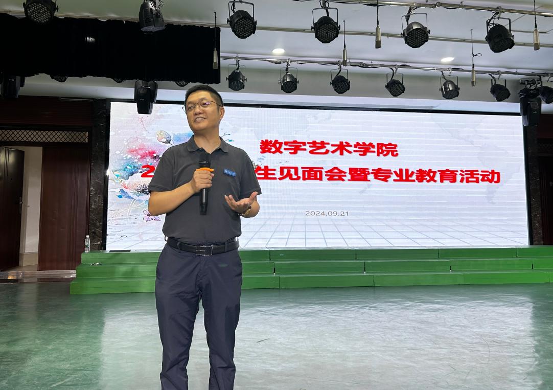 庄涛文院长首先代表学院向新生们致以热烈的欢迎,并亲自为新生们上了意义非凡的“开学第一课”。他深情回顾了数字艺术学院的发展历程,分享了学院在教育实践中的辉煌成就,同时详细介绍了学院的专业特色、强大的师资力量、卓越的教科研实力以及广阔的就业前景。庄院长特别强调了学院的育人模式,鼓励新生们珍惜大学时光,勇于探索,积极实践,努力成为具有创新精神和实践能力的优秀人才。