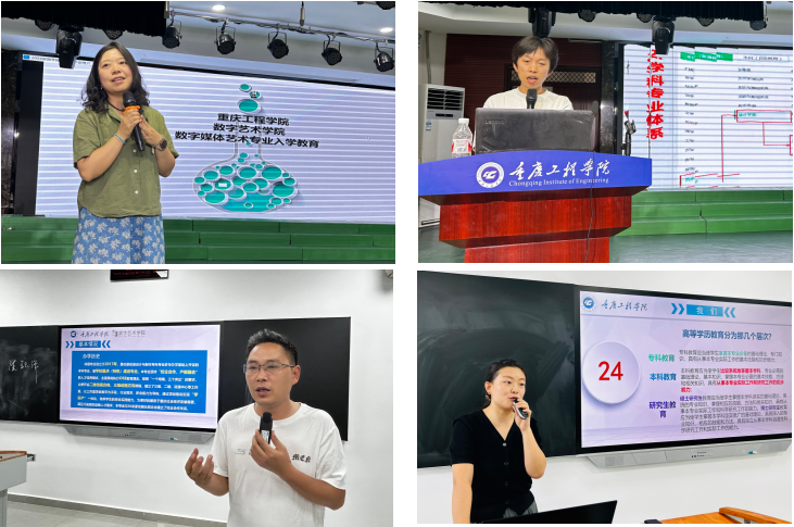 随后,专业宣讲环节分三个会场同步进行,每个会场都洋溢着浓厚的学术氛围。在设计学专业会场,设计系主任陈娟娟教授与数字媒体艺术专业带头人刘涛教授携手,为新生们描绘了设计学的广阔天地;动画专业会场则由动画系主任陈银伟副教授引领,深入解析了动画艺术的魅力与挑战;而在电影制作专业会场,专业带头人李旗副教授与副院长杨林林教授、院长助理余俊彤博士共同为新生们揭开了电影制作的神秘面纱,详细介绍了该专业的课程设置、教学设施及未来发展规划。