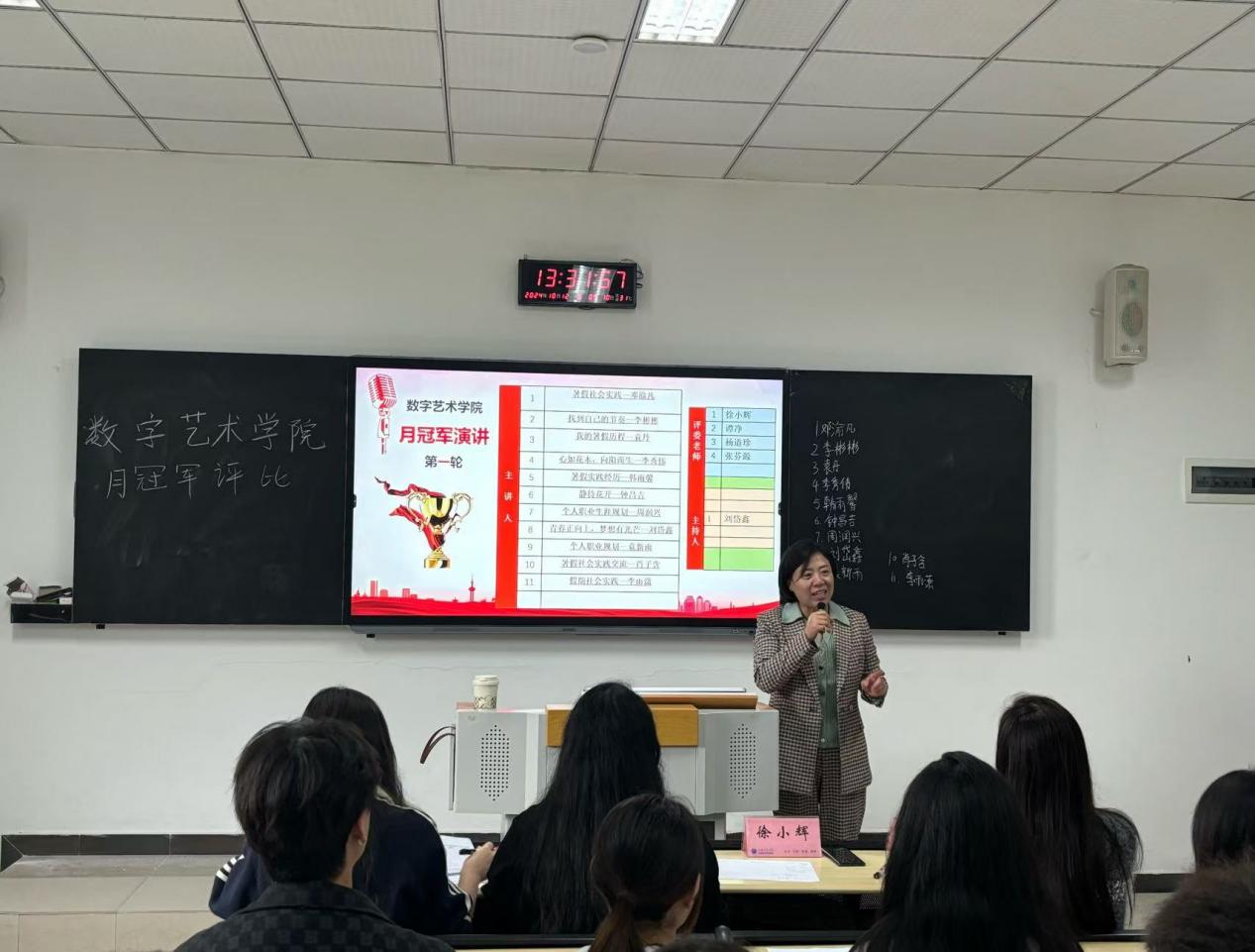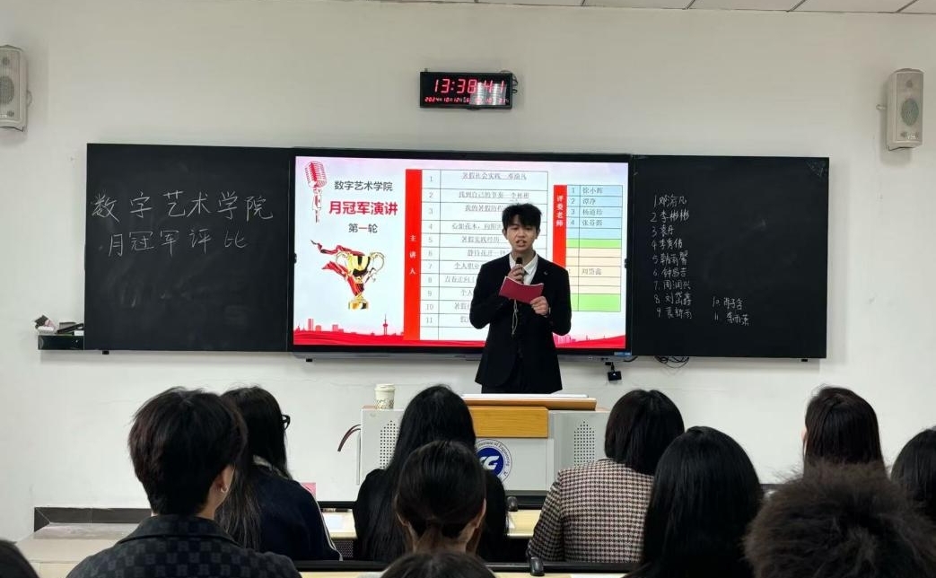 本网讯(文/刘岱鑫 谭净 图/刘岱鑫)为进一步加强学院文化建设,提升同学们的演讲能力和心理素质,深入学习贯彻习近平新时代中国特色社会主义思想,持续推动主题教育走深走实,为同学们提供一个展示自我、锻炼口才的平台。10月12日中午,数字艺术学院在第六教学楼118教室开展数字艺术学院《演讲与口才》第一轮月冠军评比活动。